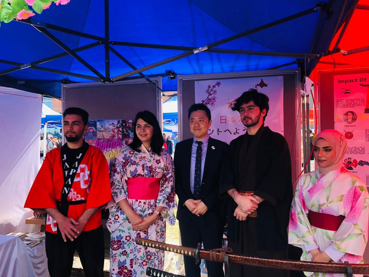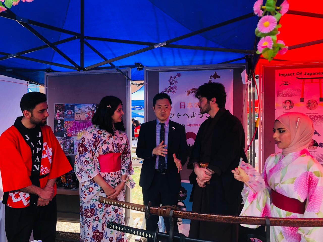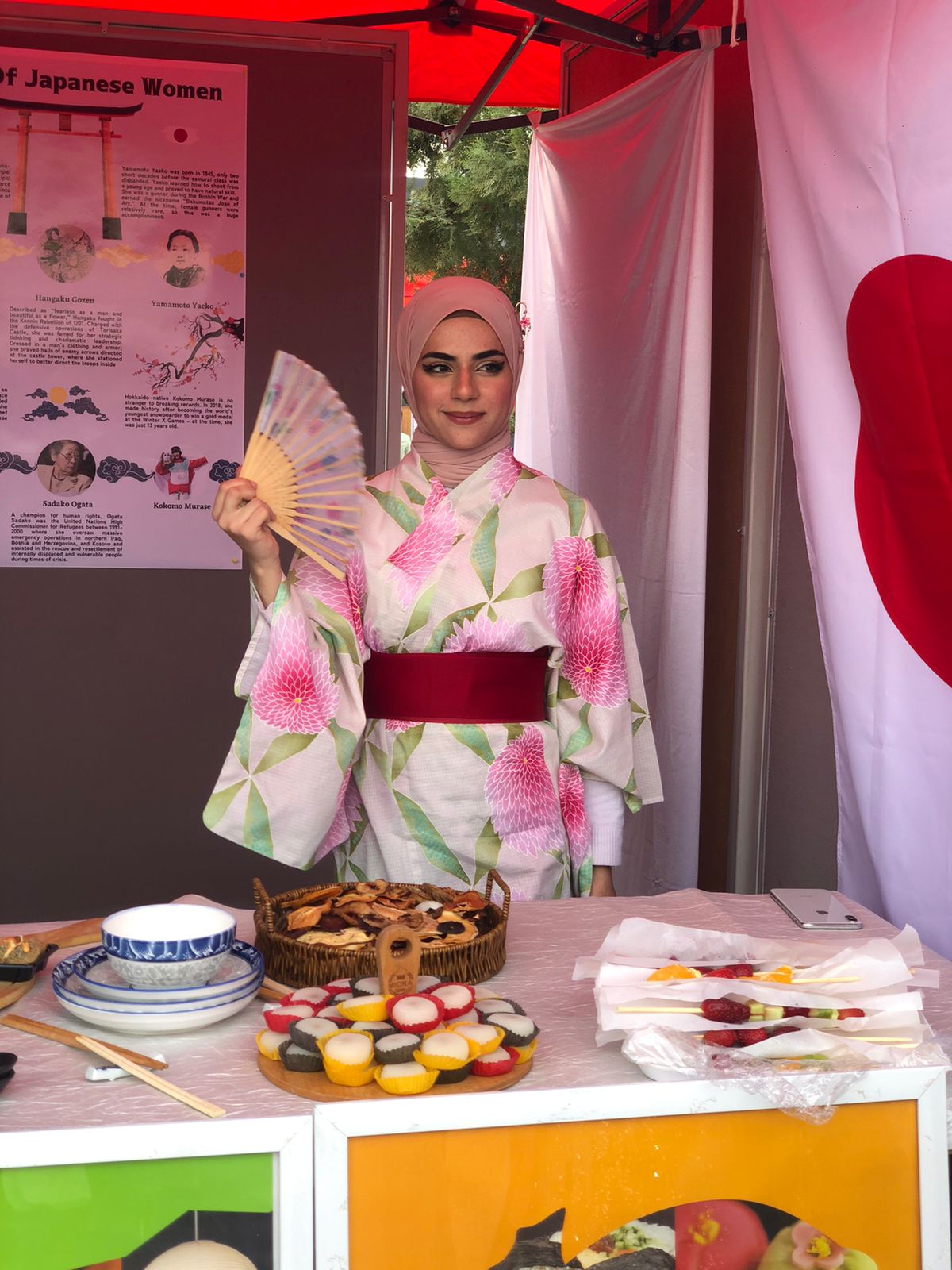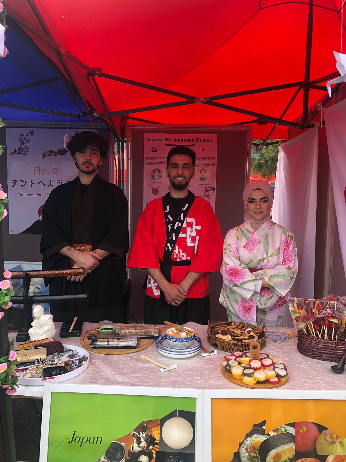 Japan’s tent was decorated with beautiful cherry blossom decorations, a wonderful sight to witness. Visitors were treated to a range of cultural performances, including traditional music, martial arts demonstrations, food, and a tea ceremony. Several departmental students and staff highlighted Japan’s performance by dressing in traditional attire, performing with precision and power, captivating the audience, and earning them a standing ovation.
