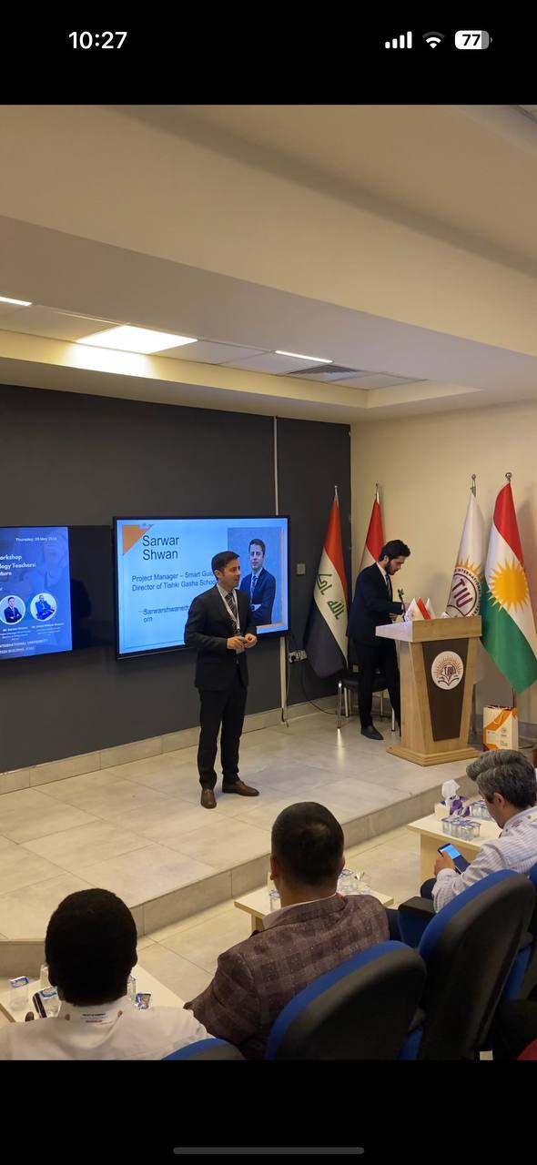 After Mr Oz’s enlightening presentation, Mr Sarwar Shwan, the Project Manager of Smart Guide and Director of Tishky Gasha School, proceeded to deliver a speech on “Technology in Modern Teaching,” showcasing his extensive knowledge in the field. Mr. Shwan offered attendees an insight into the influence of technology on modern education, demonstrating its capacity to improve the learning process.