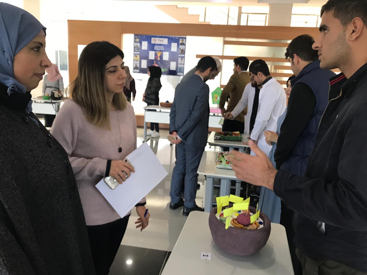 Biology departments second grade students have organized a competition on models that represent plant , animal cells and their contents. On December 16, 2019, each student of the class was asked to prepare a hand craft model of a cell or one of the components. The students showed incredible enthusiasm and desire to participate. The models were shown as an exhibition and activity in the education faculty. The models were edible models which students and guests enjoyed eating them at the end.