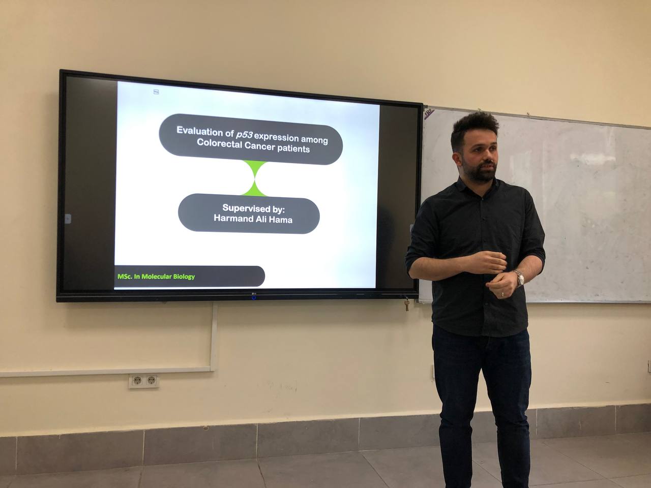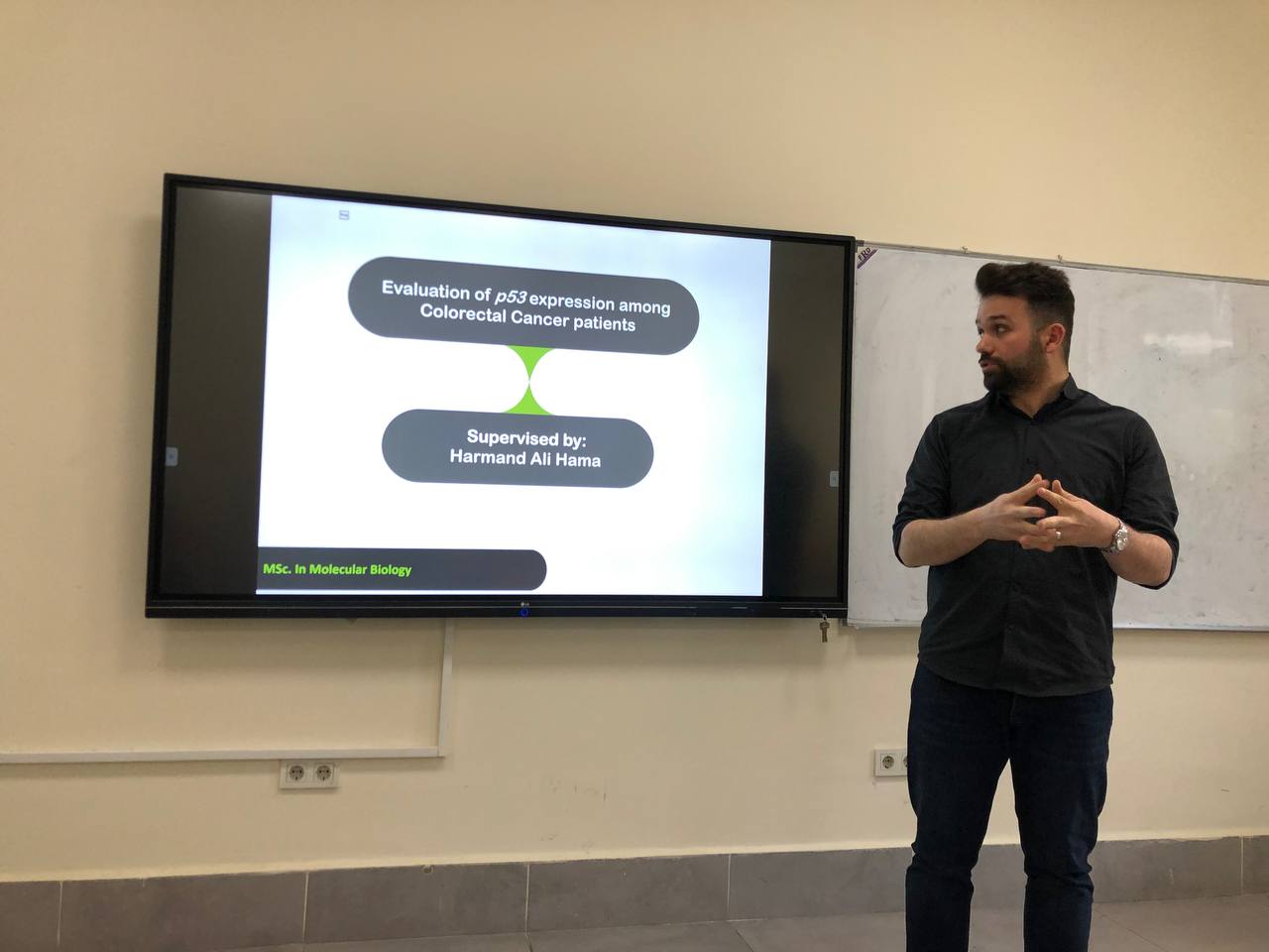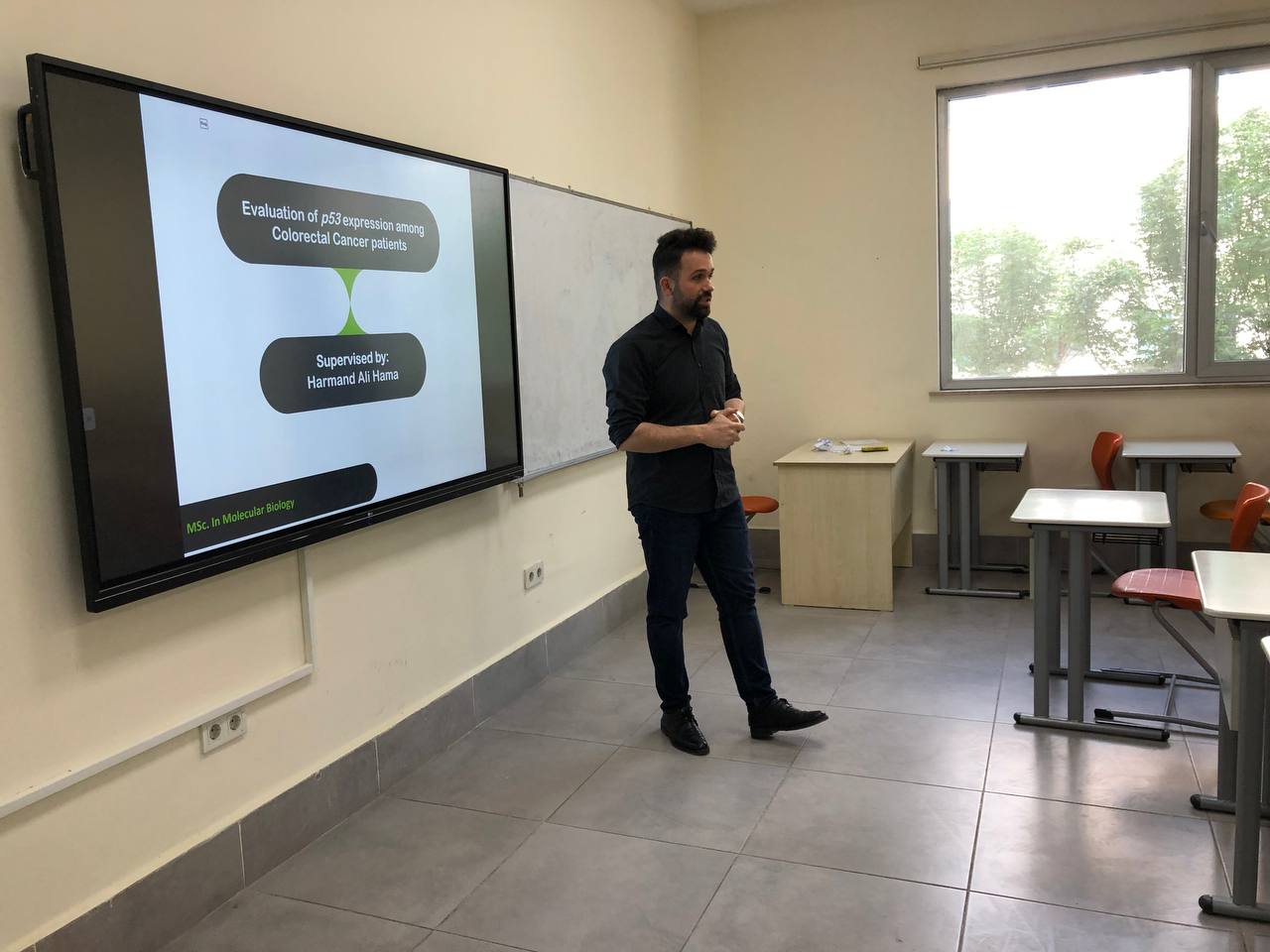 The Department of Biology, Faculty of Education at Tishk International University organized a seminar titled: Evaluation of p53 expression among Colorectal Cancer Patient, held on April 14th, 2021. The seminar was presented by Mr. Harmand Ali , Head of Biology Education Department. He explained the p53 gene, its role, and its expression on colorectal cancer patients.