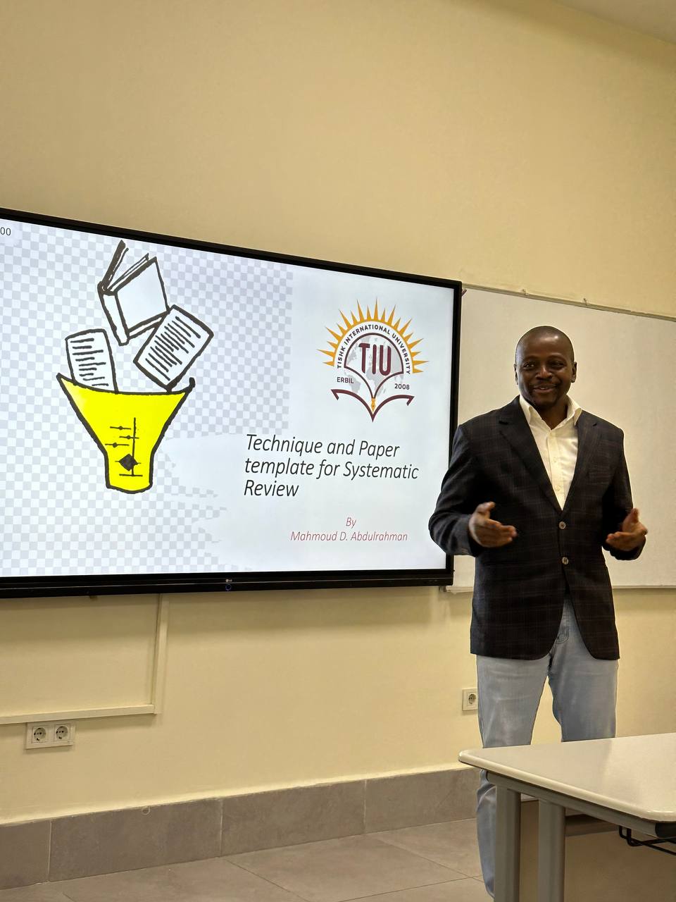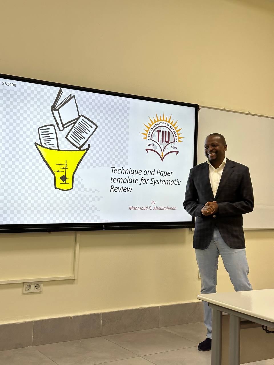 On September 18th, 2023 , Dr. Abdulrahman Mahmud Dogara , Lecturer in Biology Education Department, Faculty of Education at Tishk International University, presented an internal seminar on Systematic Review. His seminar intricately outlined the steps for conducting a systematic review, provided insights into the templates used for such papers, and discussed advanced techniques relevant to the process.