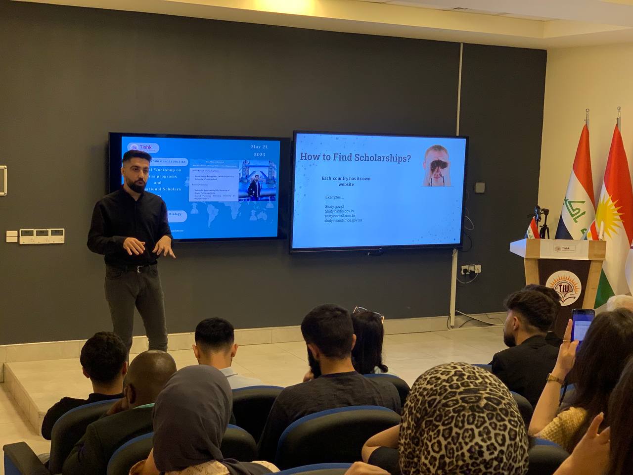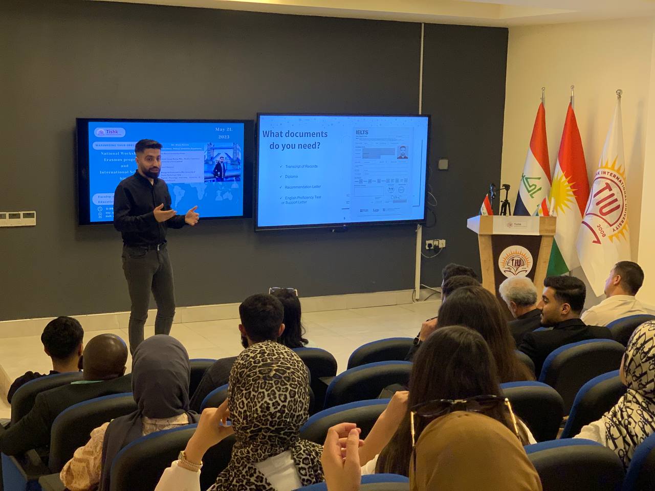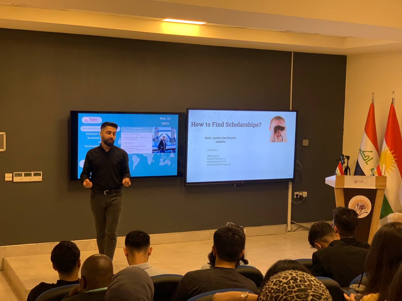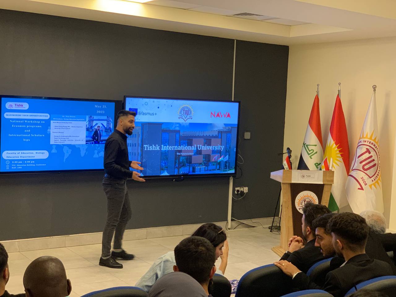 The Biology Education Department, Faculty of Education at Tishk International University is delighted to share with you the highlights of the recent National Workshop, entitled: Maximizing Your Opportunities: A National Workshop on the Erasmus Program and International Scholarships. This event, held on May 21st, was presented by Mr.Wrya Agha Hassan, a distinguished graduate of Tishk International University, Biology Education Department . The aim of the workshop was to equip students with valuable insights and information on how to make the most of the opportunities offered through the Erasmus Program and other international scholarships.