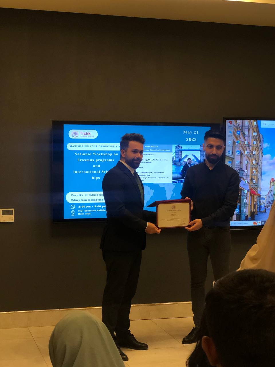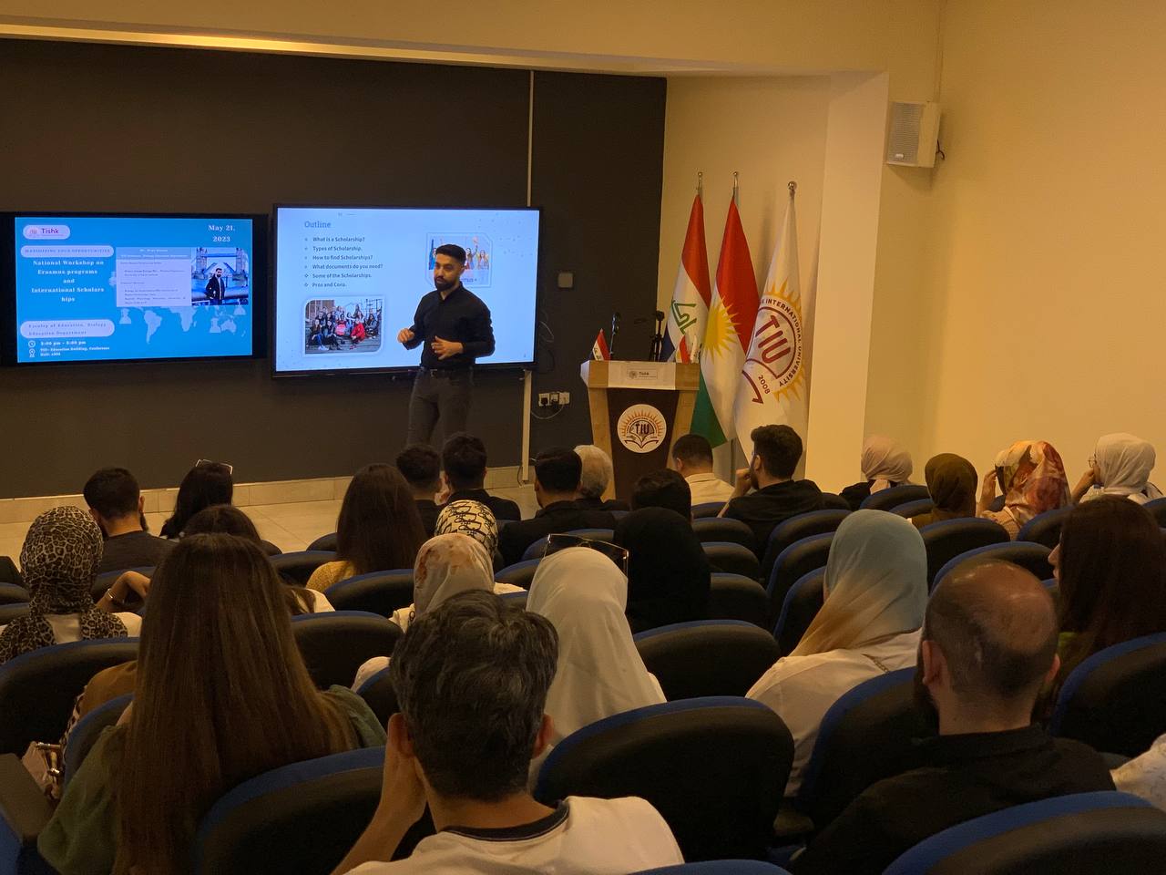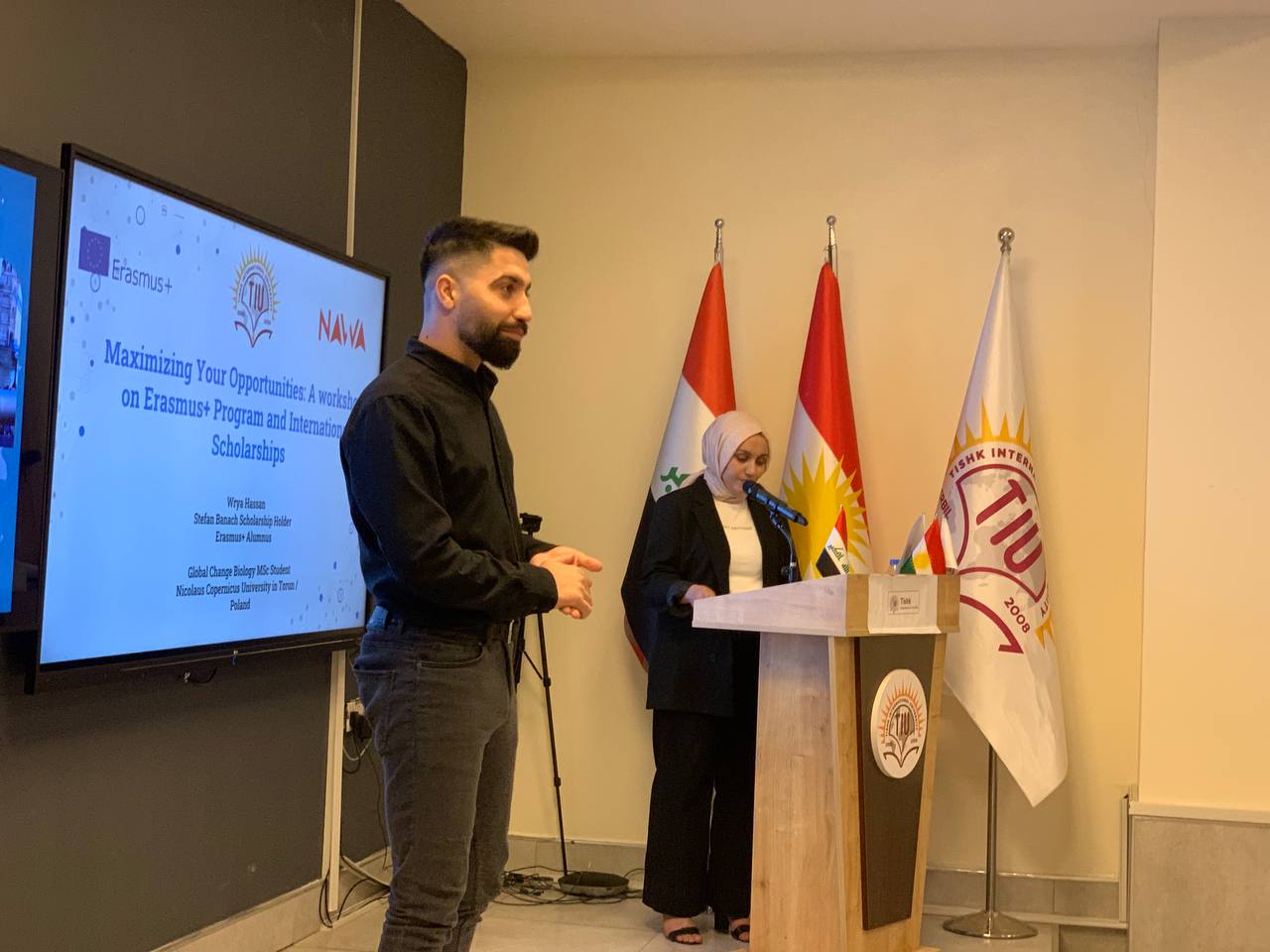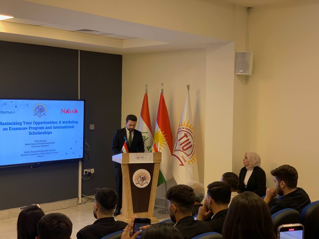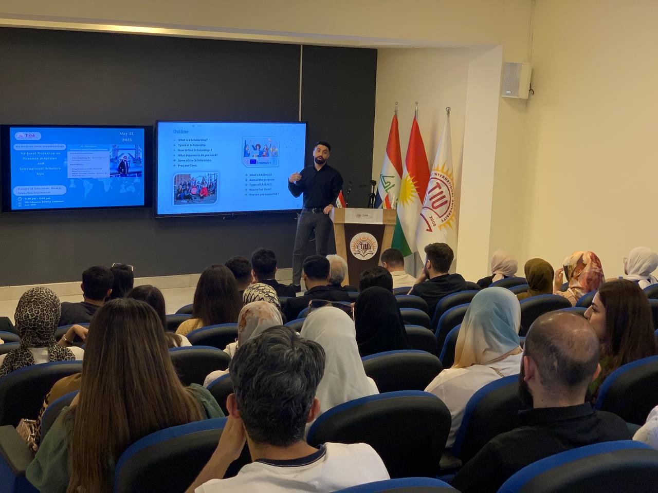 The Biology Education Department, Faculty of Education at Tishk International University is delighted to share with you the highlights of the recent National Workshop, entitled: Maximizing Your Opportunities: A National Workshop on the Erasmus Program and International Scholarships. This event, held on May 21st, was presented by Mr.Wrya Agha Hassan, a distinguished graduate of Tishk International University, Biology Education Department . The aim of the workshop was to equip students with valuable insights and information on how to make the most of the opportunities offered through the Erasmus Program and other international scholarships.