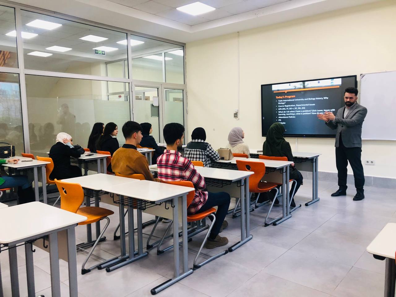 On January 3rd, 2022, the Department of Biology, Faculty of Education at Tishk International University organised an orientation program for first-grade students. The event aimed to welcome the new students and familiarise them with the courses, rules, and activities of the Biology Education Department. The orientation program started at 9:30 AM, and the Head of the Biology Education Department, Mr. Harmand Ali, warmly welcomed the students to the department, congratulated them on reaching this academic level, and delivered a motivational speech to the future biologists. He also went through the qualities and values the students should uphold during the education journey and professional life and spoke about what it takes to be a student working in the educational area.