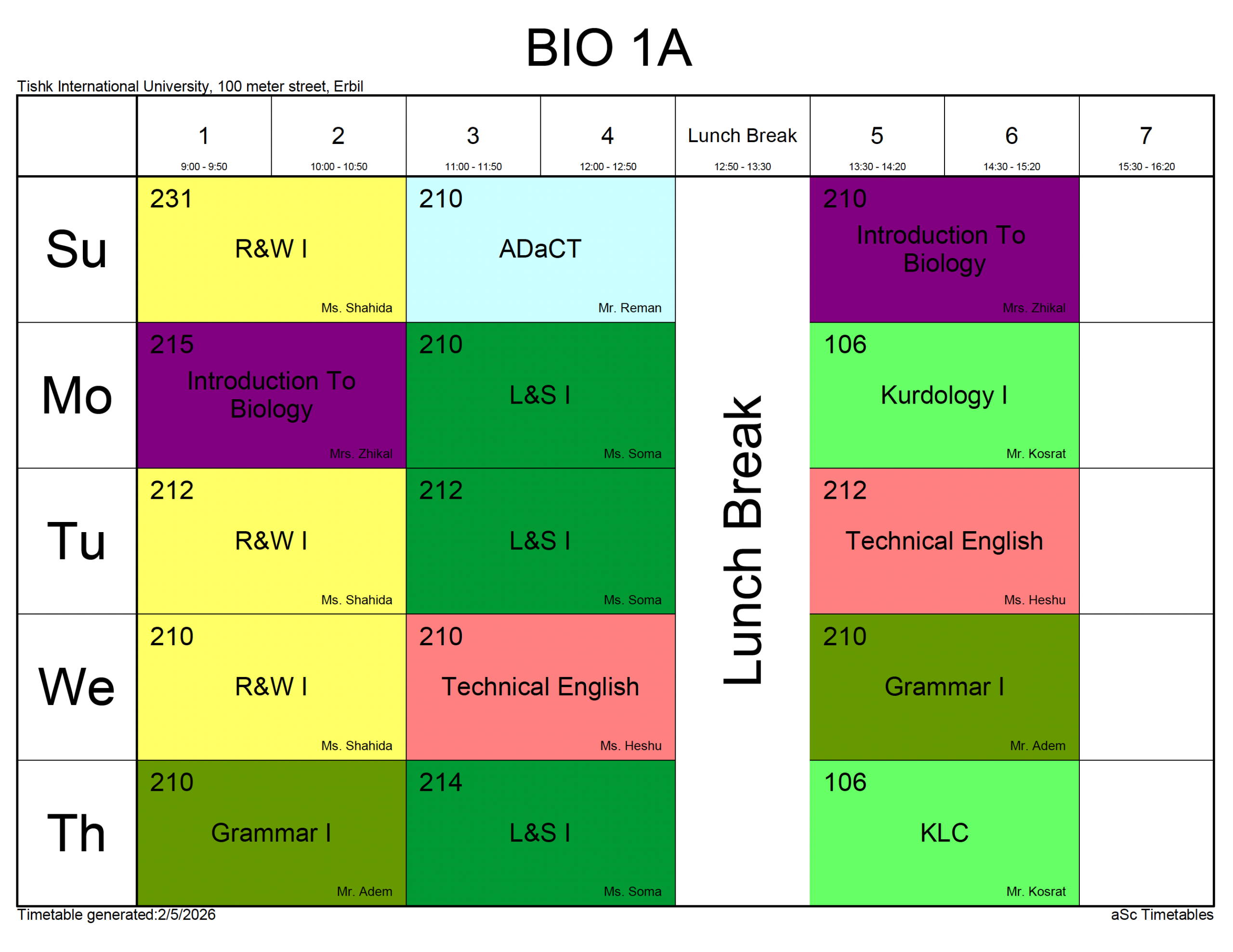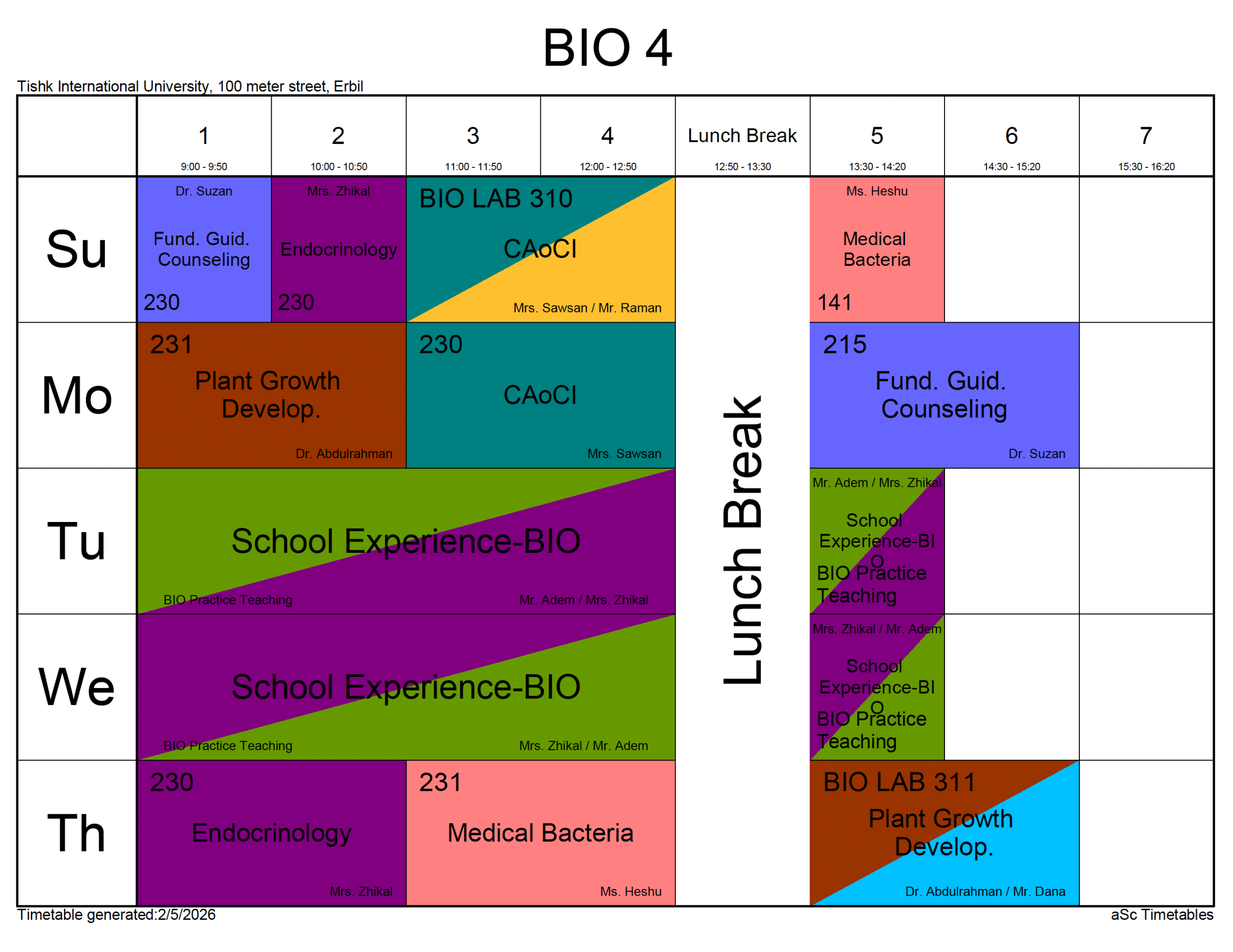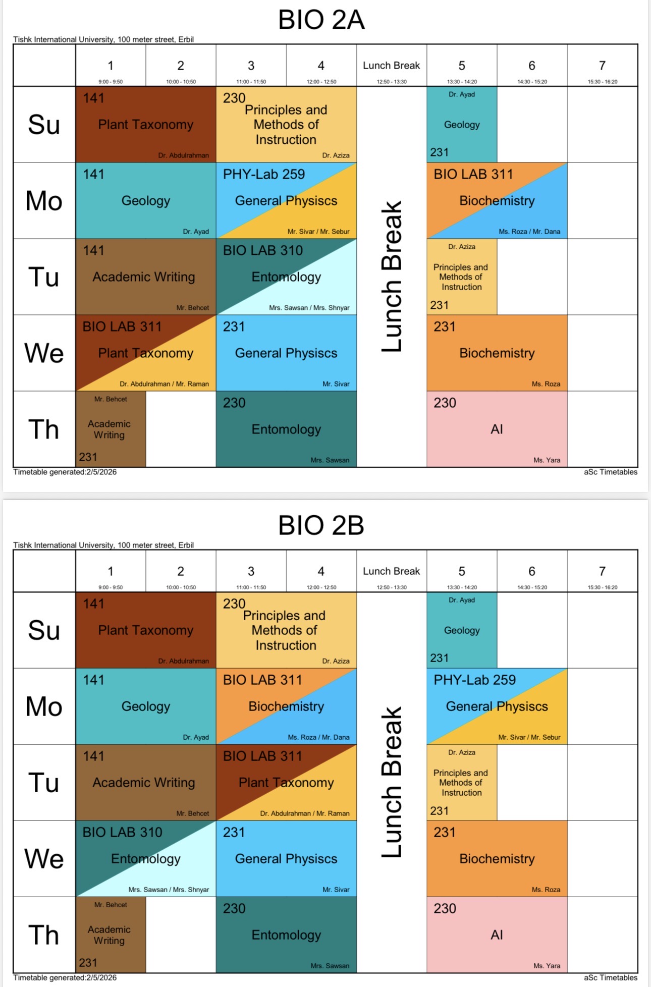 Please check the dates and times carefully and make sure that you are checking the correct Schedule. The biology department does not give academic consideration to students who misread the published timetables.