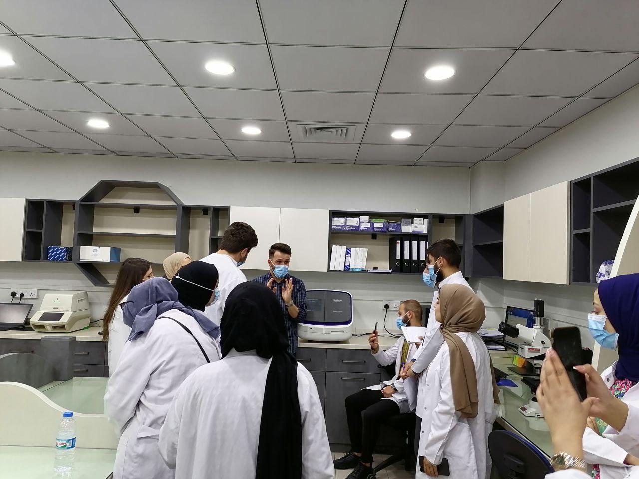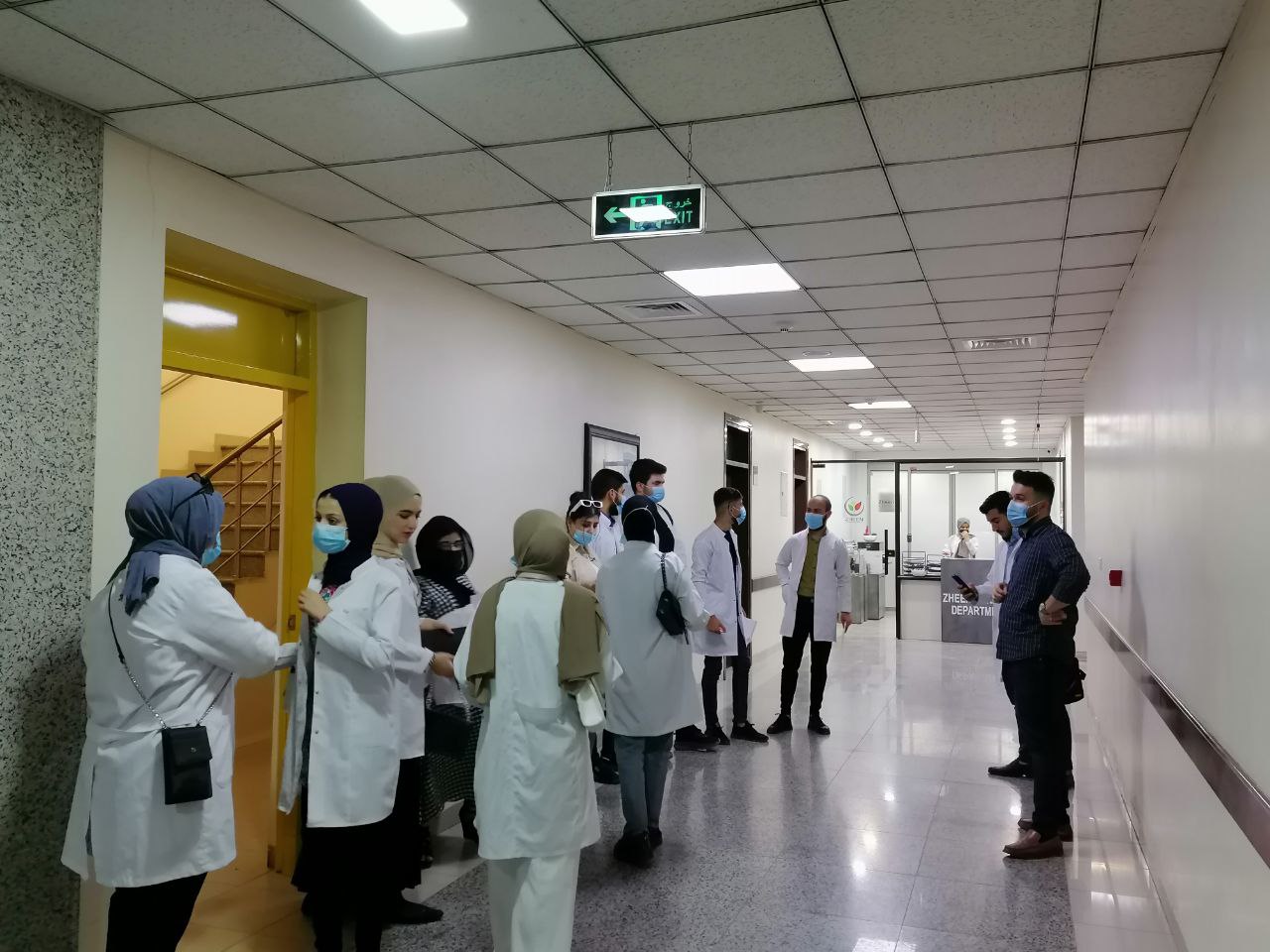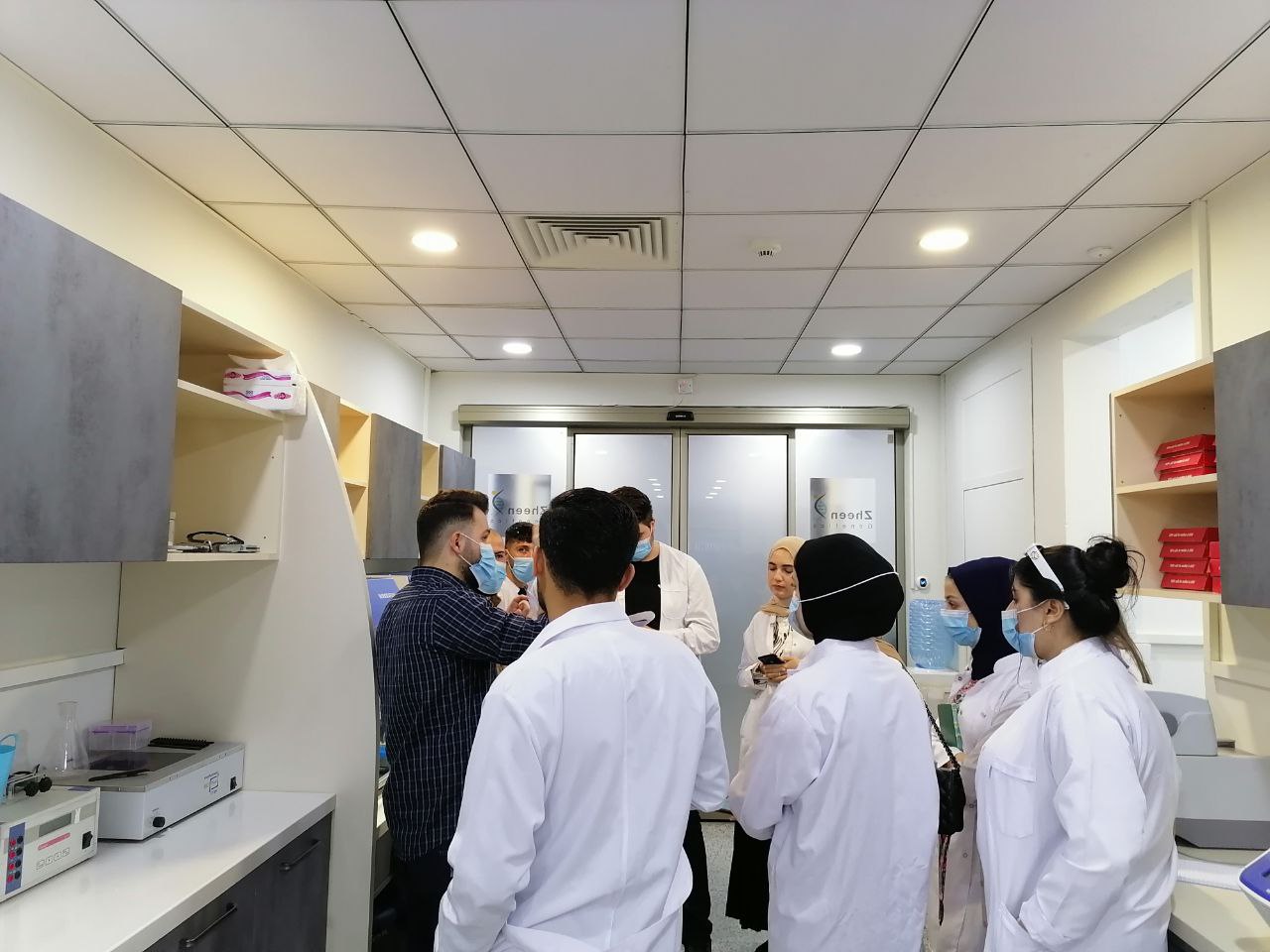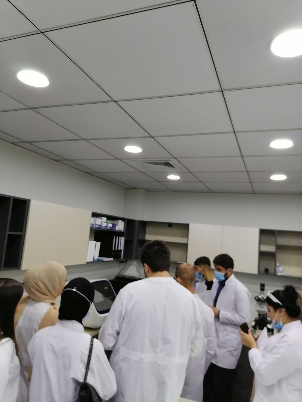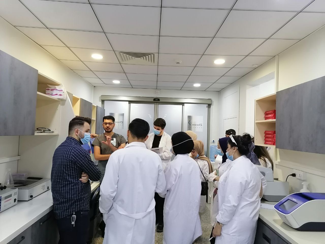 The trip supervisors provided students with guides to support them during the trip. The lab technician and genetic expert from Zheen International Hospital Genetics Laboratory hosted and guided the group of staff and students. They explained the process of genetic tests, starting from DNA or RNA extraction until the sequencing and karyotyping, based on the test the physicians require. The genetic expert also explained the different techniques and machines in genetic and molecular labs. The types of genetic, molecular, viral, and genomic polymorphism tests were also discussed. Our staff and students greatly benefitted from the visit and appreciated the fruitful and detailed explanations provided by the genetic lab expert. At the end of the visit, the supervisors gave an assignment to the students regarding the trip.