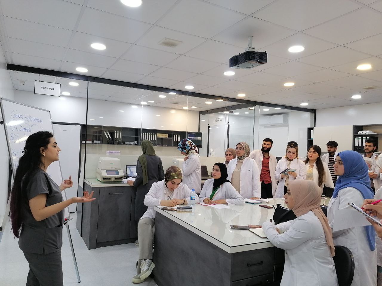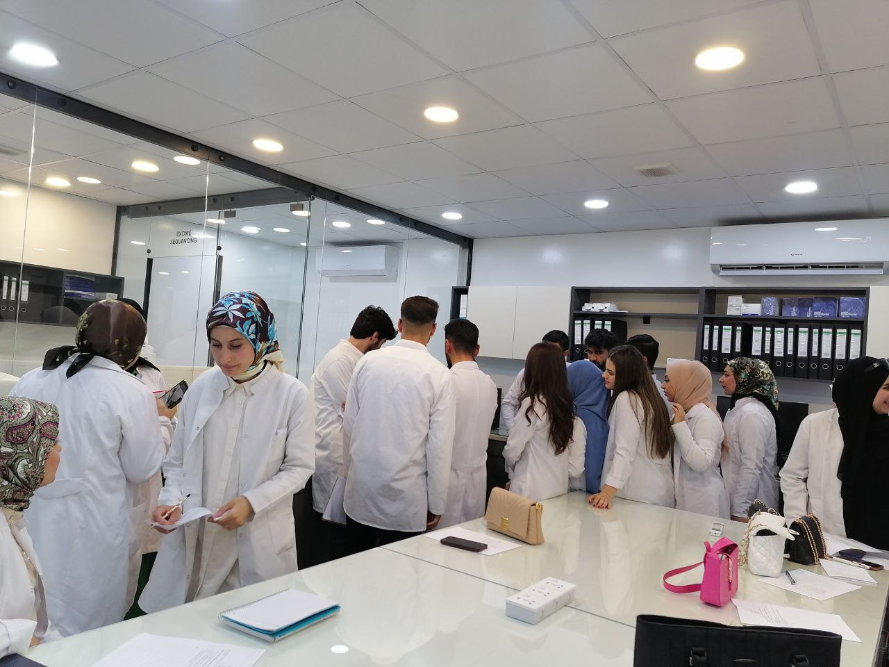 The trip supervisors provided students with guides to support them during the trip. The lab technicians and genetic experts from Zheen International Hospital Genetics Laboratory hosted and guided the group of staff and students. They explained the process of genetic tests, starting from DNA or RNA extraction until the sequencing and karyotyping, based on the test the physicians require. The genetic expert also explained the different techniques and machines in genetic and molecular labs. The types of genetic, molecular, viral, and genomic polymorphism tests were also discussed. Our staff and students greatly benefitted from the visit and appreciated the fruitful and detailed explanations provided by the genetic lab expert. At the end of the visit, the supervisors gave an assignment to the students regarding the trip.