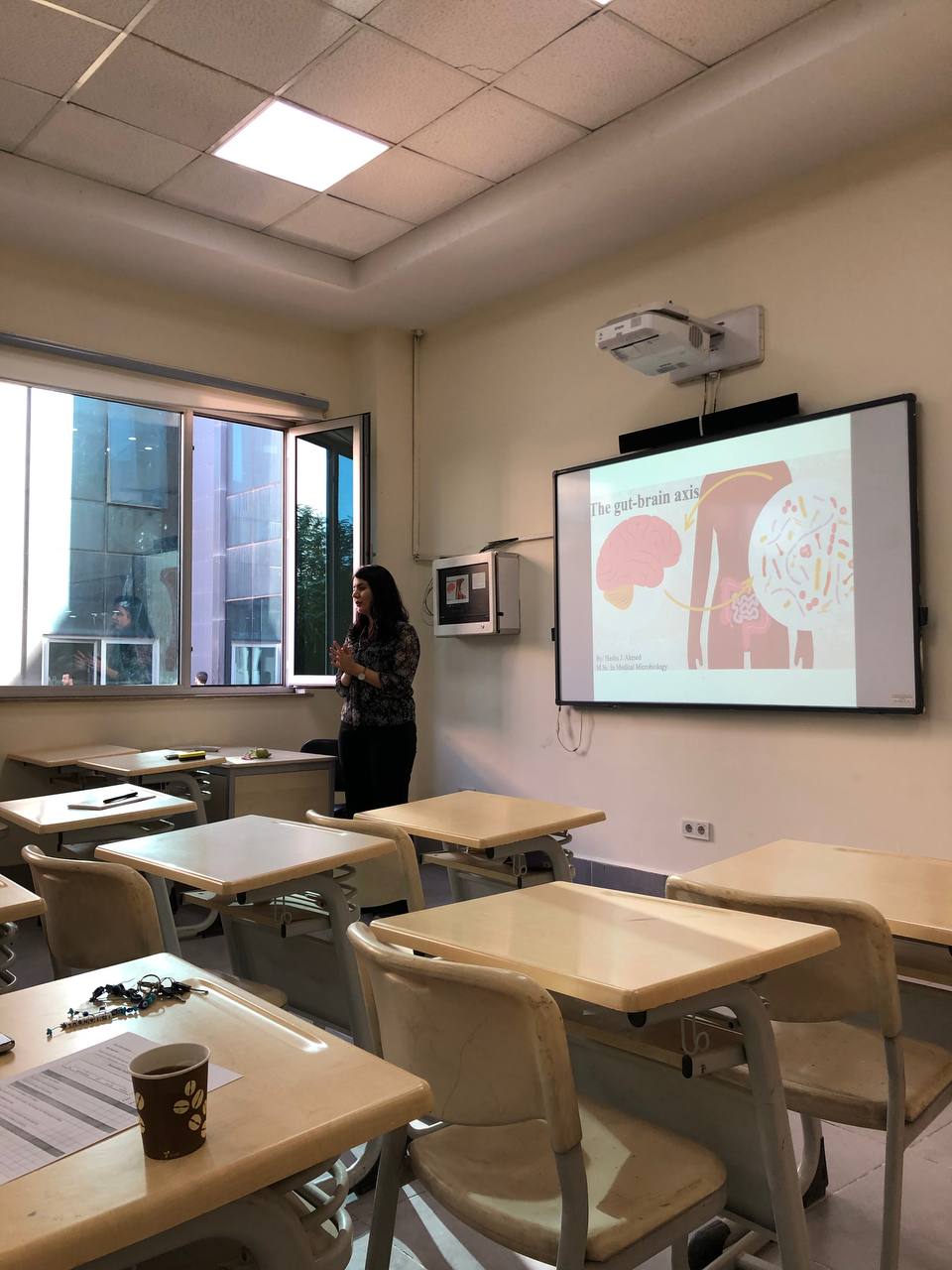 On October 12th, 2022, Miss Heshu Jalal, Assistant Lecturer at the Department of Biology Education, Faculty of Education at Tishk International University presented a presentation for biology staff under the title “The Gut-Brain Axis”.