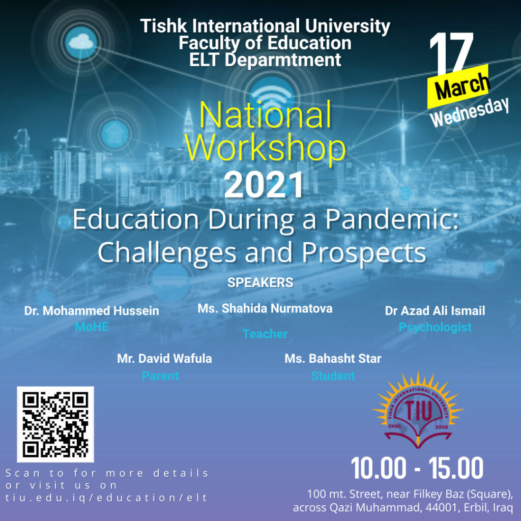 In this workshop, we discuss the educational challenges that the COVID-19 pandemic has brought about in the Kurdistan Region and look into the ways that these challenges can be considered opportunities for the development of the educational sector. We bring together different voices and experiences in order to create an opportunity for dialogue among teachers, students, parents, and policymakers.