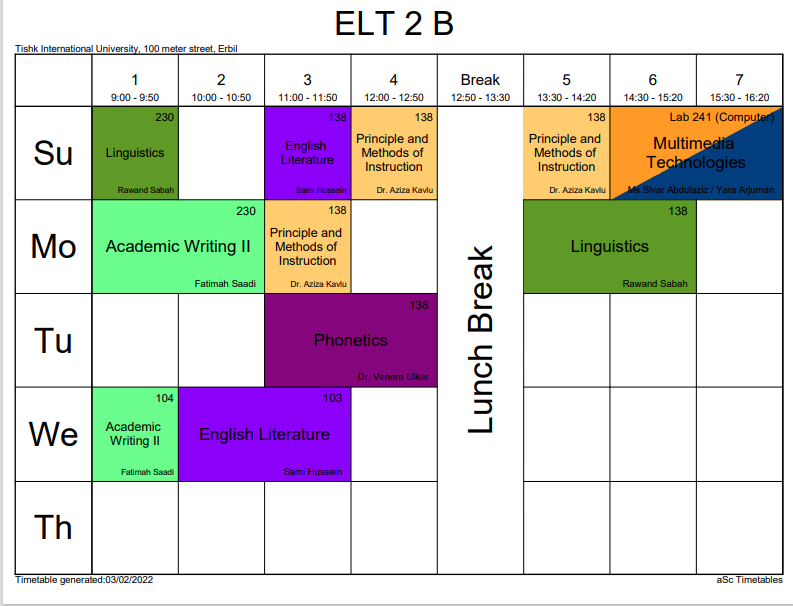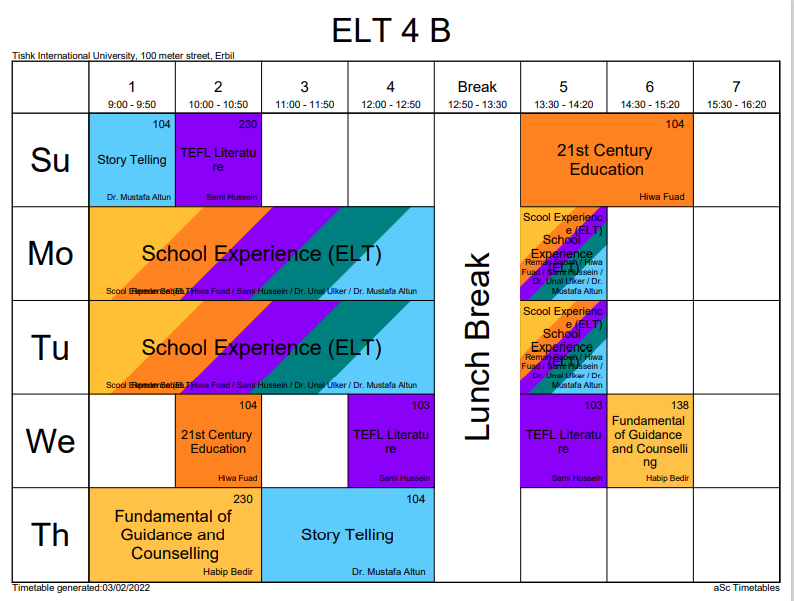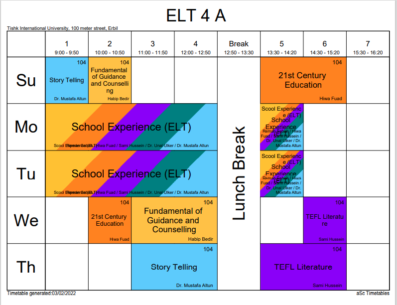 ELT 2,3 and 4 Spring-Semester Schedule ELT-2-A.png ELT-2-B.png ELT-3-A.png ELT-3-B.png ELT-4-A.png ELT-4-B.png Web Admin2022-02-03T14:04:42+03:00