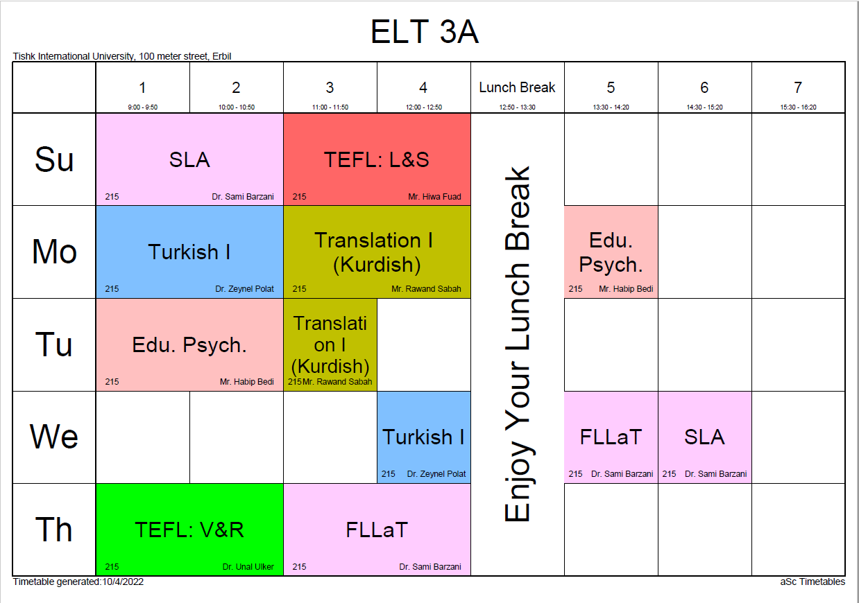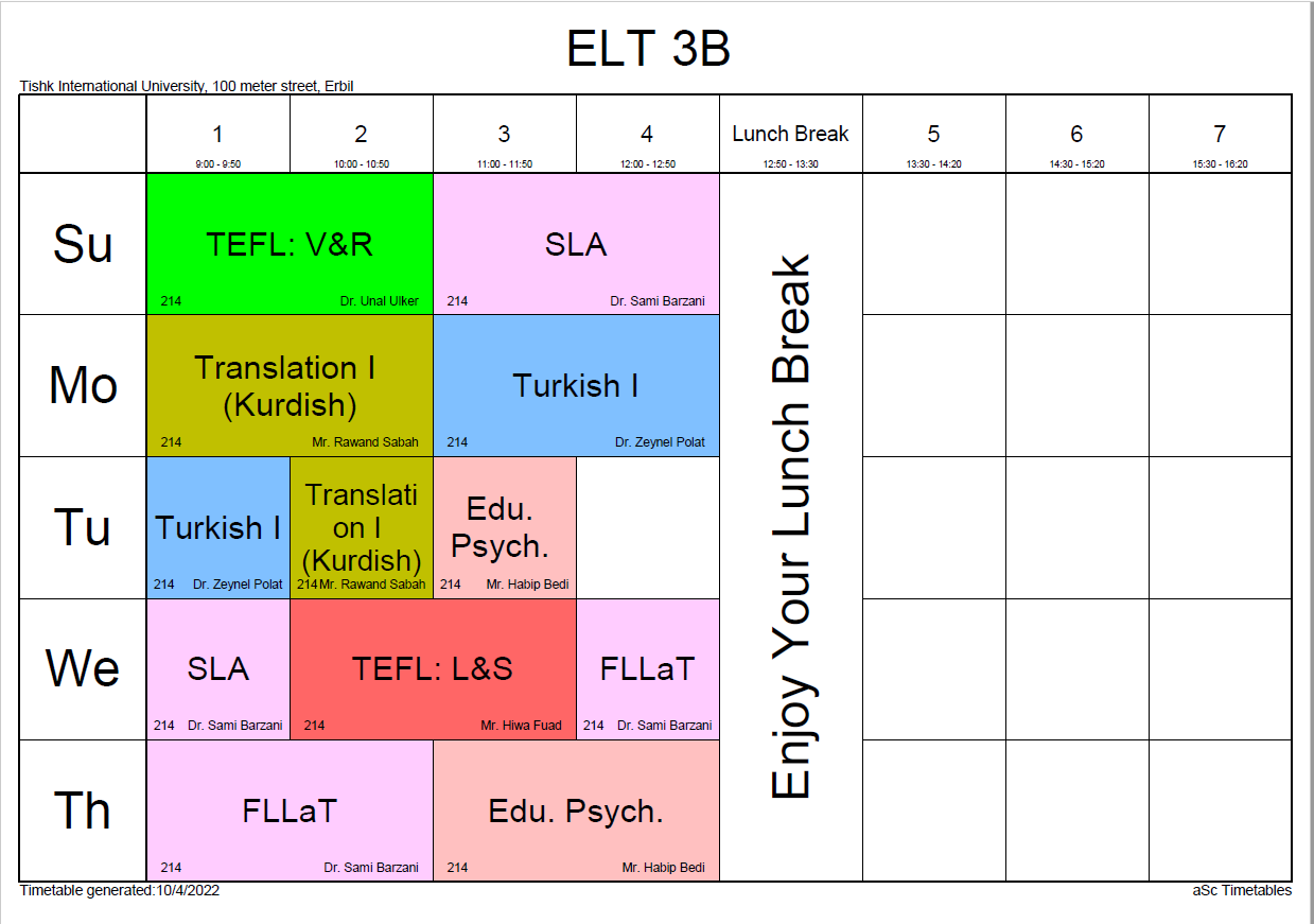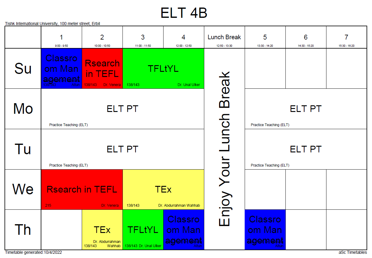 ELT Grades Tentative Schedule – New AY 2022-2023 Fall-Term Dear Students: Below are your tentative schedules for this week. ELT-2A.png ELT-2B.png ELT-3A.png ELT-3B.png ELT-4A.png ELT-4B.png Web Admin2022-10-04T18:29:50+03:00