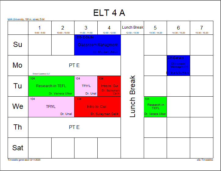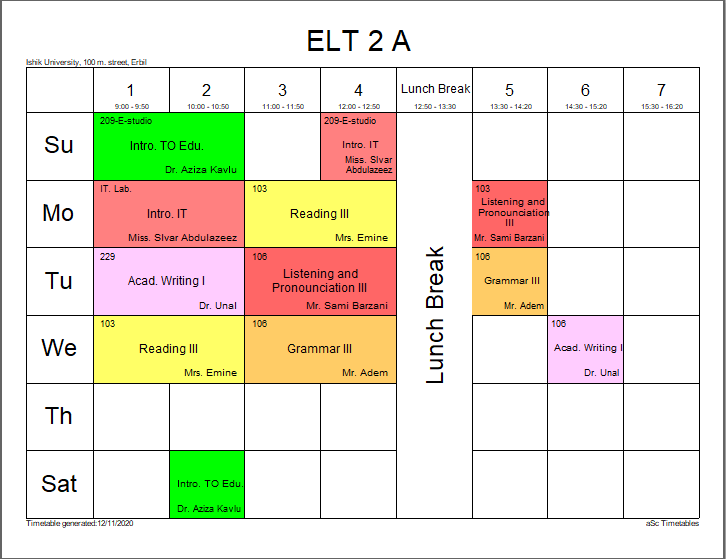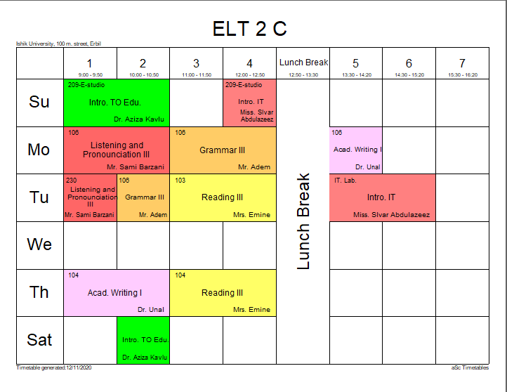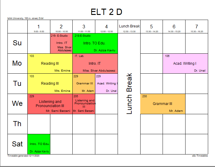 Please be informed that ELT Timetable is Updated. You need to follow this timetable for next week.