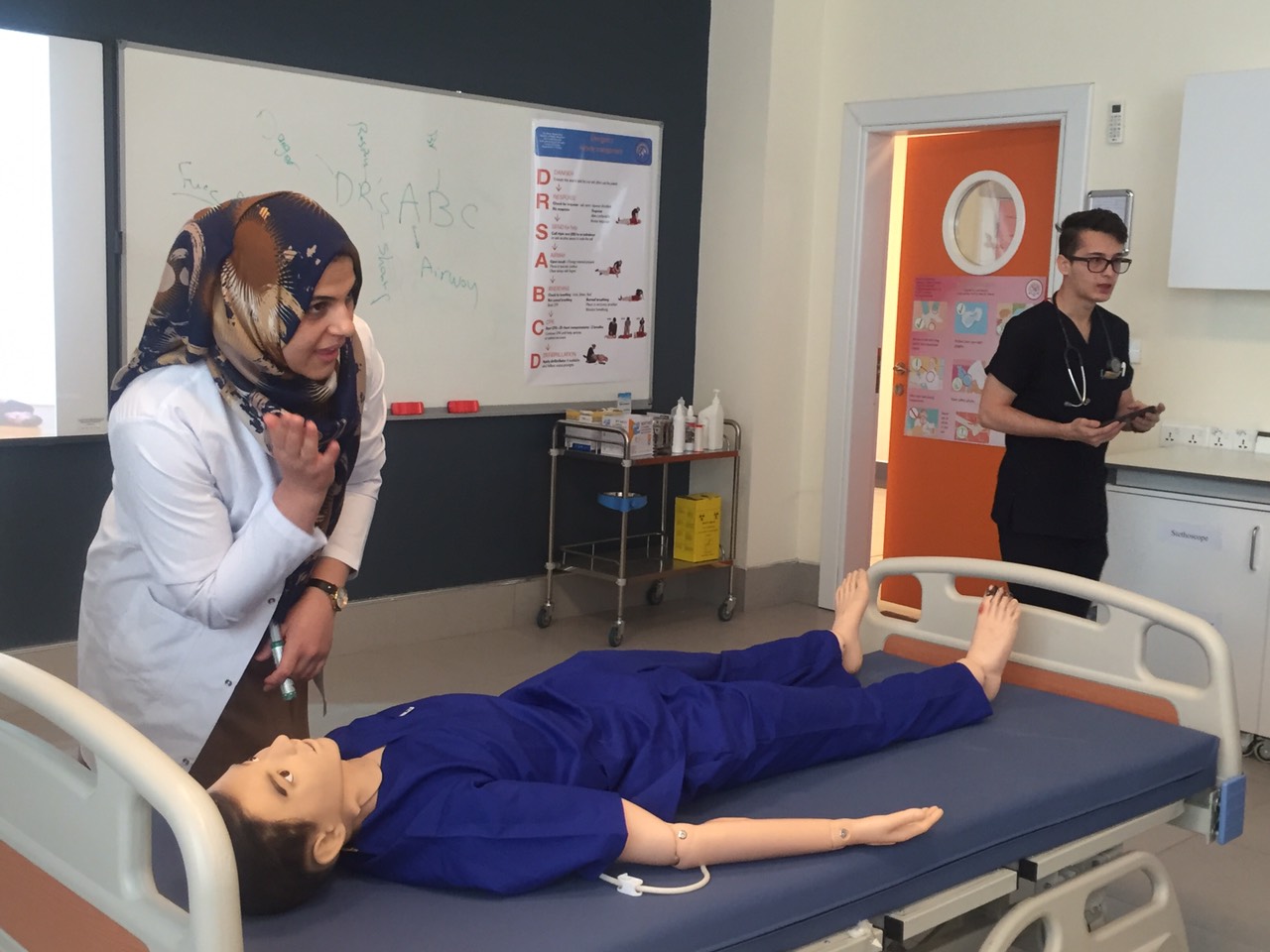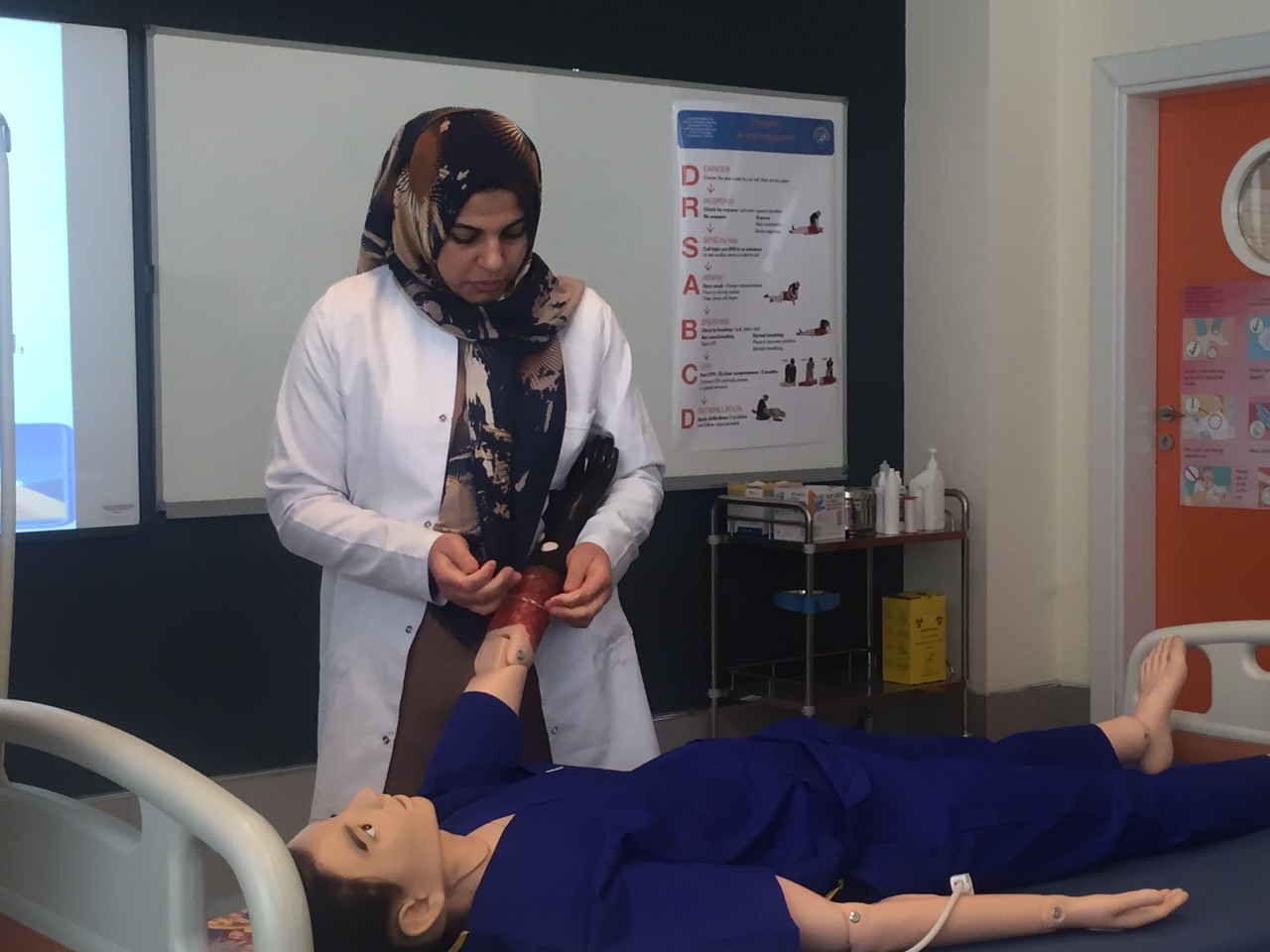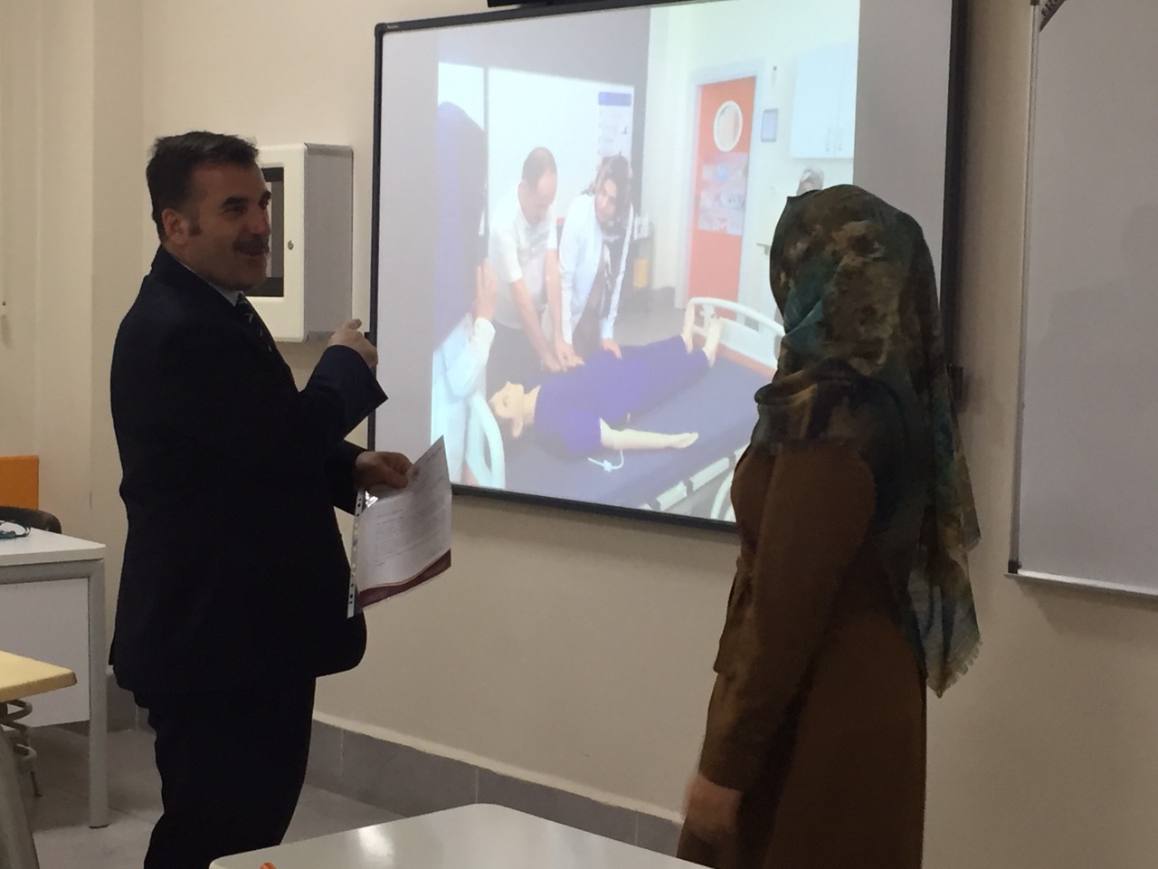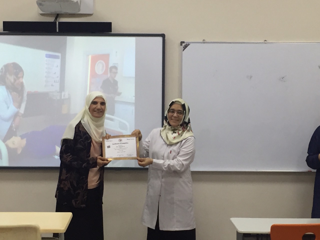On September 29, 2019, the staff of the ELT department participated in a seminar on First Aid presented by the Nursing Faculty. The seminar included information about first aid kits, CPR, Heimlich maneuver, and more. The instructors encouraged the educators to demonstrate their newfound first aid skills. A certificate ceremony was held to present the participants with a certificate of completion in First Aid. The certificate was presented by instructors from the nursing faculty to the staff members of ELT.