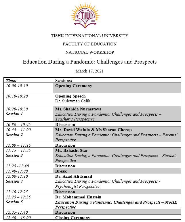 Topic: ELT Workshop: Education During a Pandemic: Challenges and Prospects