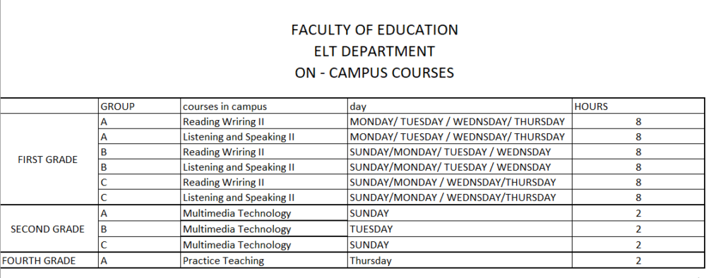 The other courses that are NOT mentioned below will be taught through online platforms.