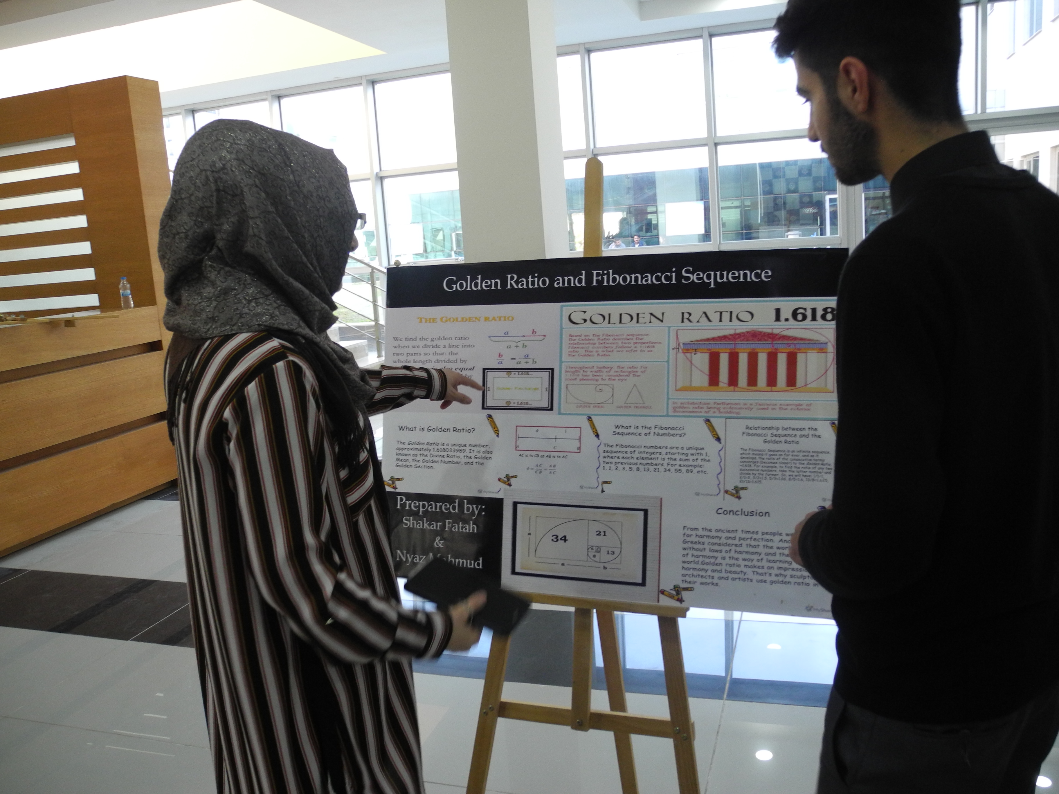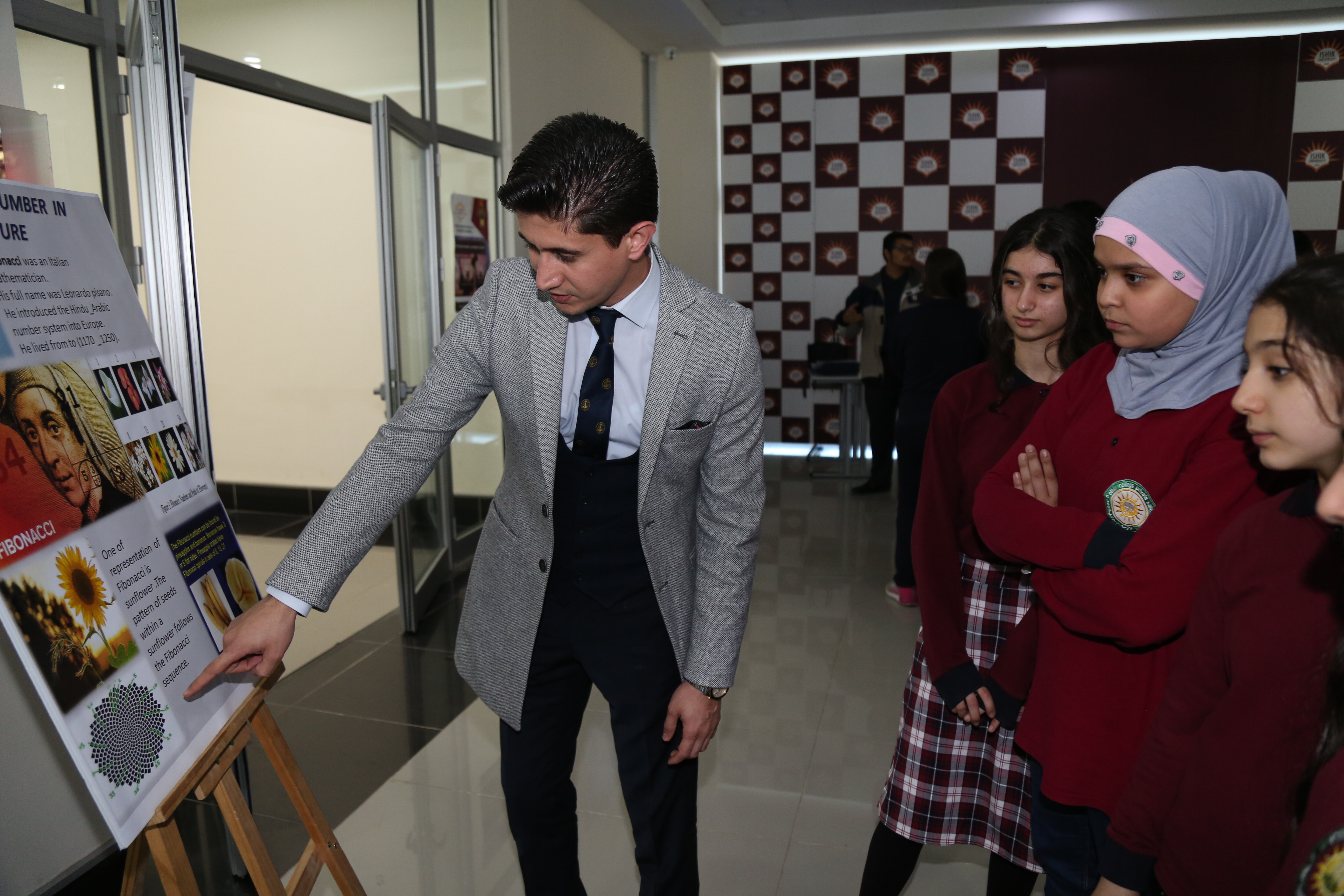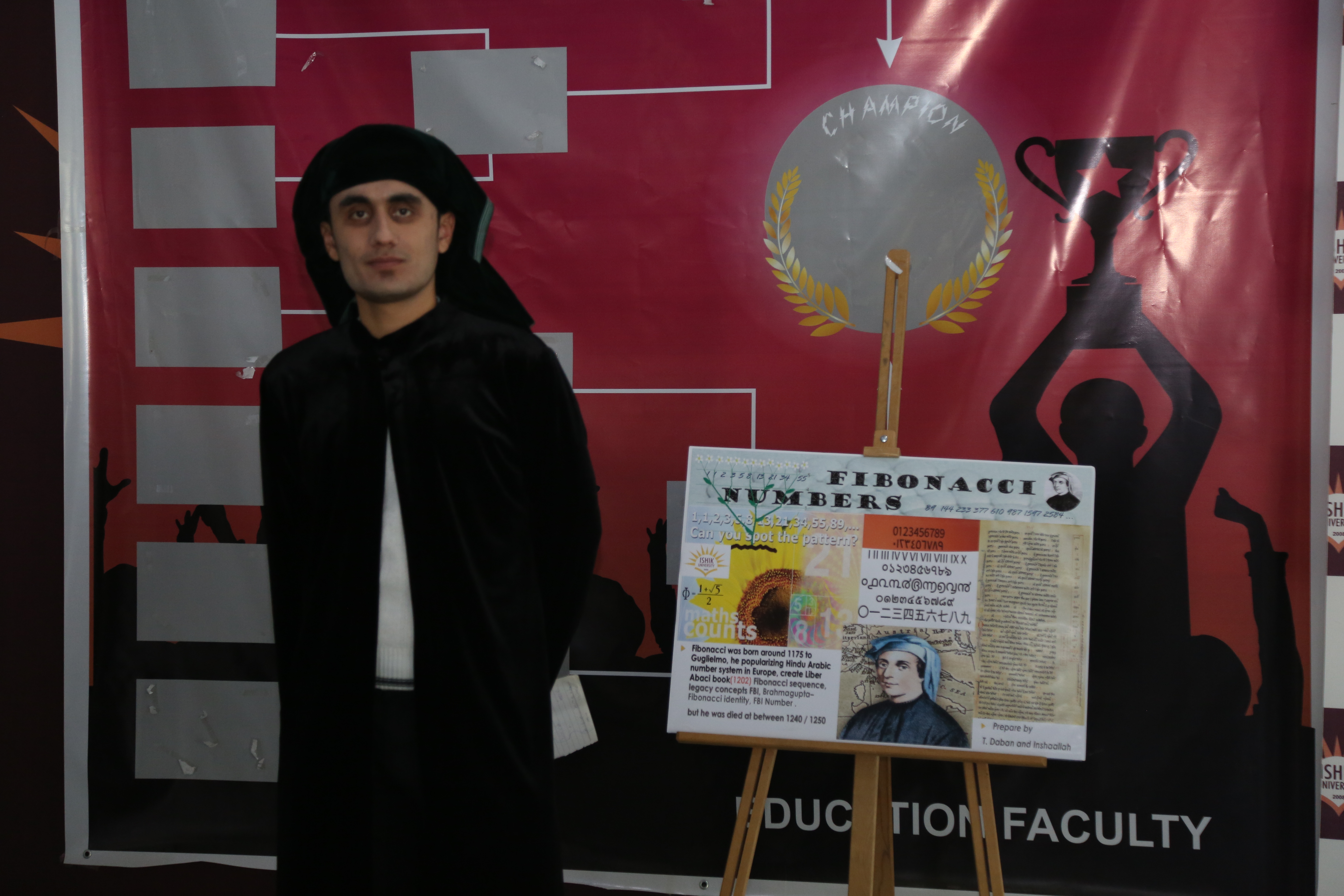 On Tuesday, December 12, 2018, Mathematics Education Department has celebrated Fibonacci Day, in which more than 150 students from the faculty were visiting and getting information from the Poster Project Presentation of the mathematics department students about the Fibonacci Sequence of numbers and its importance and relation in our daily life, and real-life examples. The posters were about History of Fibonacci Numbers, the rabbits breeding process of Fibonacci numbers, and Fibonacci numbers in nature, the human body, architecture, Quran, as well as the relation between Fibonacci numbers and Golden Ratio. The event took place in Education Faculty Entrance and started by a visit from about 20 students of Cihan College School to see the event.