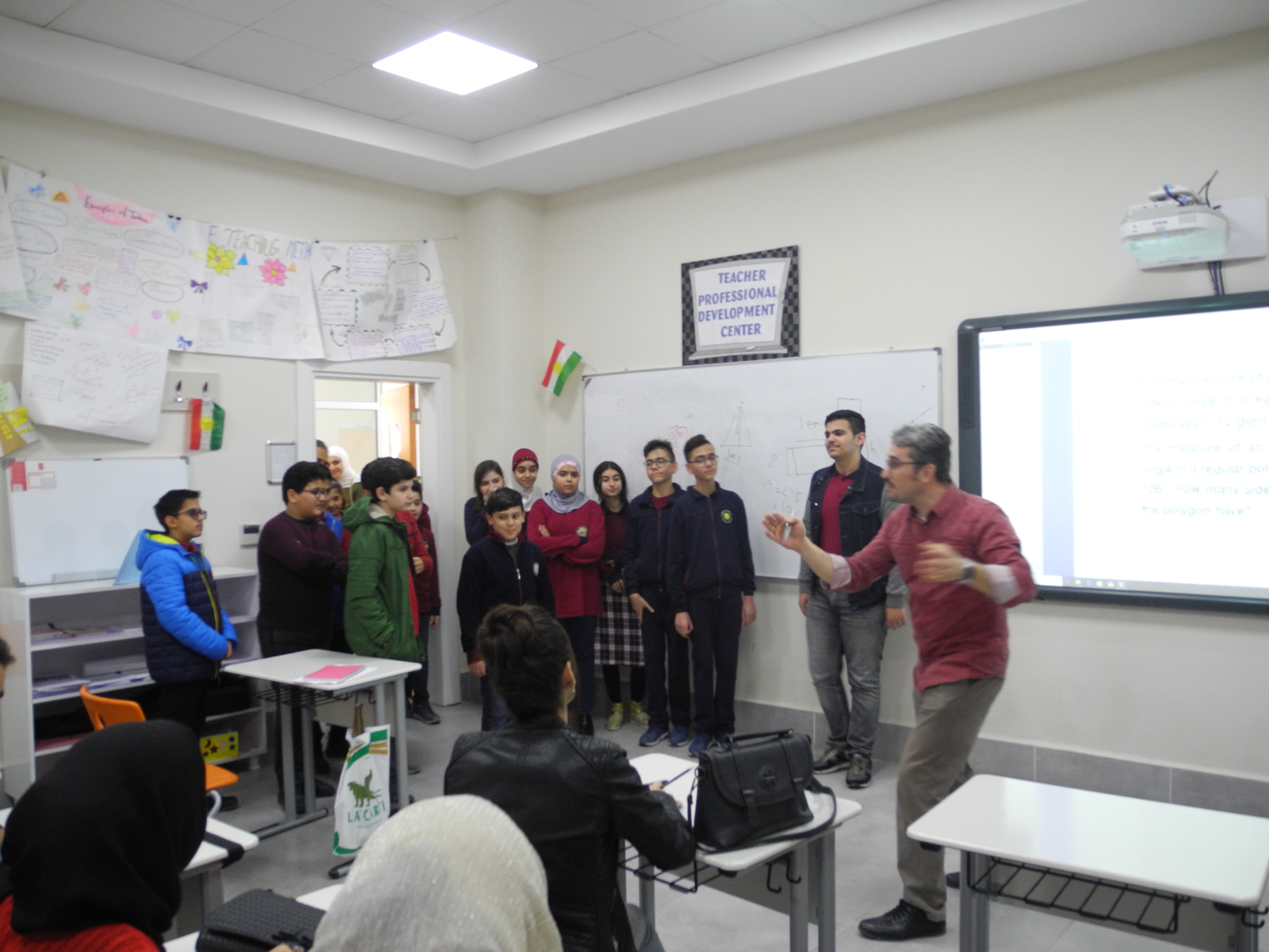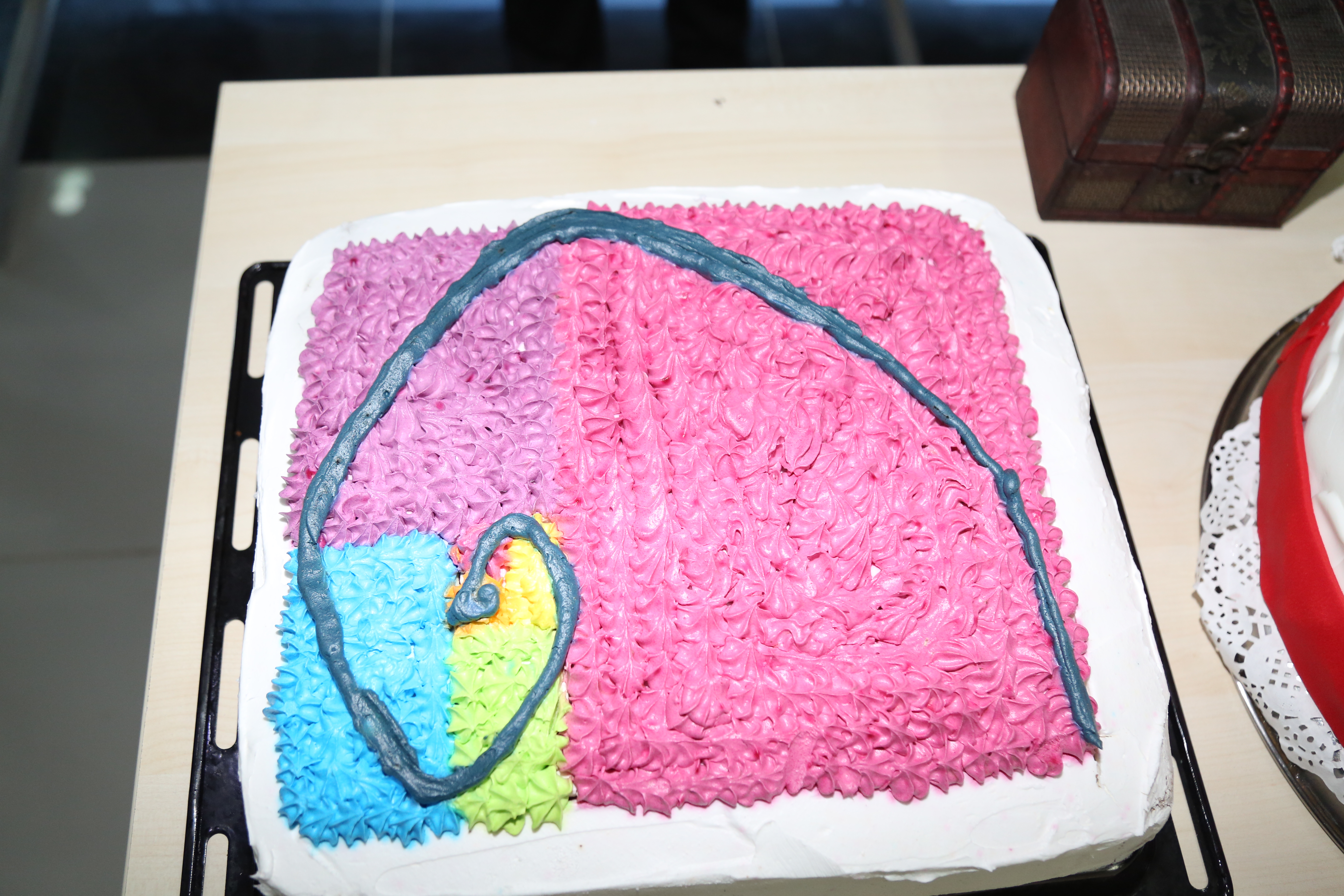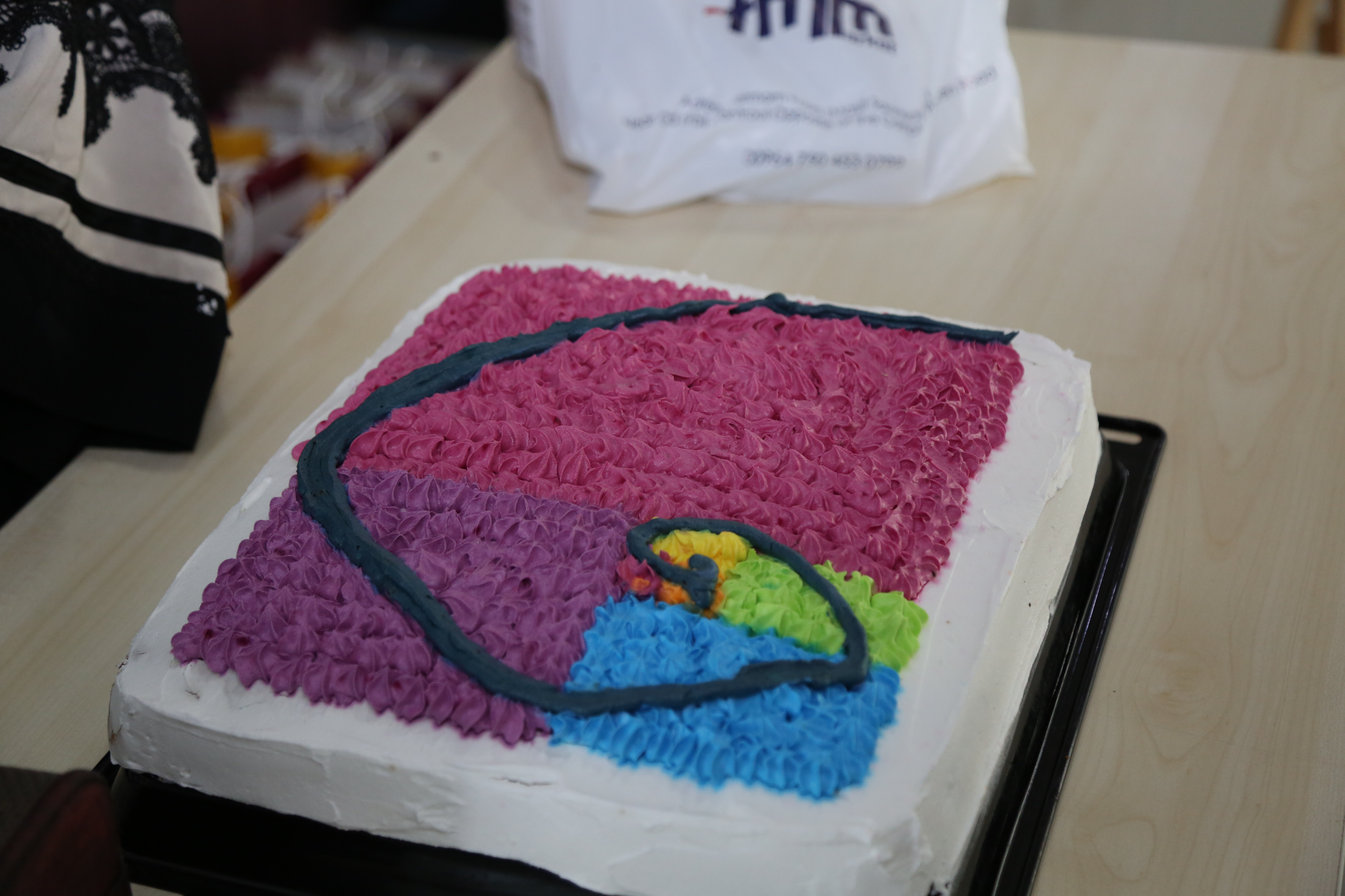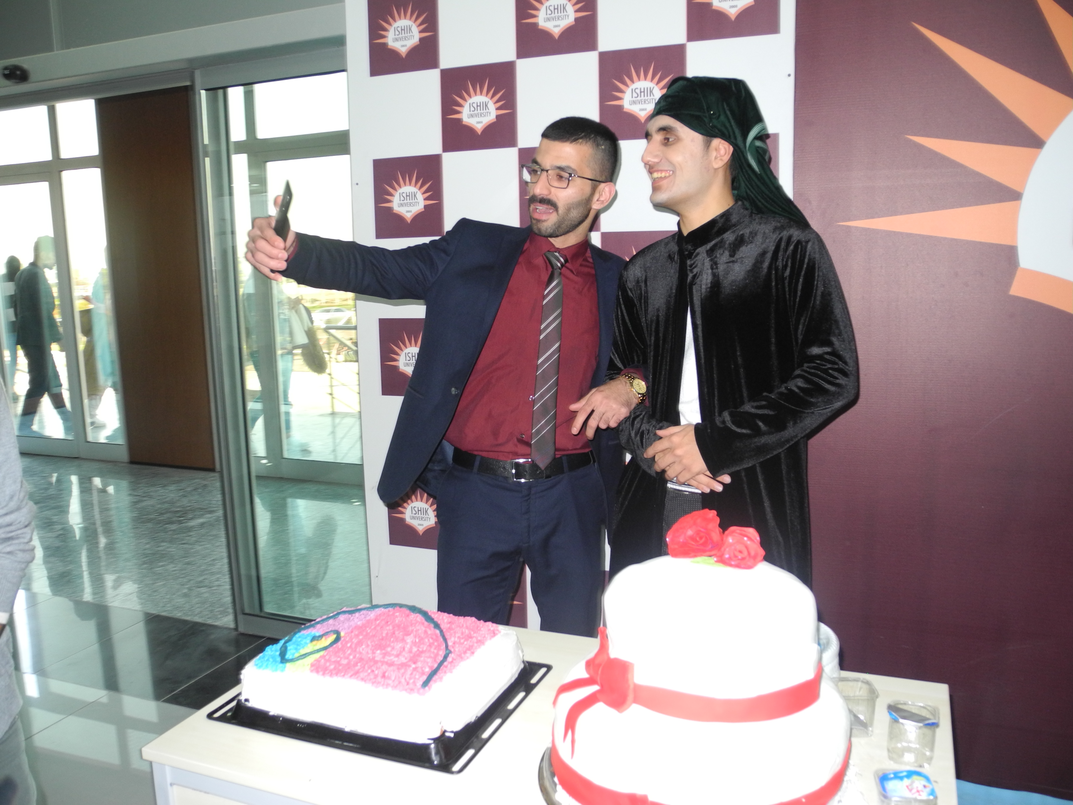 Besides of poster presentation, there was a video stand in order to show the participants some other interesting areas where Fibonacci appears in, like Music, wood shaving, seashell… etc. On the other hand, there was a free Fibonacci cake that has been prepared by one of the students on which there were Fibonacci spiral and perfect rectangles. In addition, Dr. Suleyman Celik, Dean of Education Faculty, visited the poster projects. In the end, he cut the cake and the students were sharing the cake, enjoying and engaging the atmosphere.