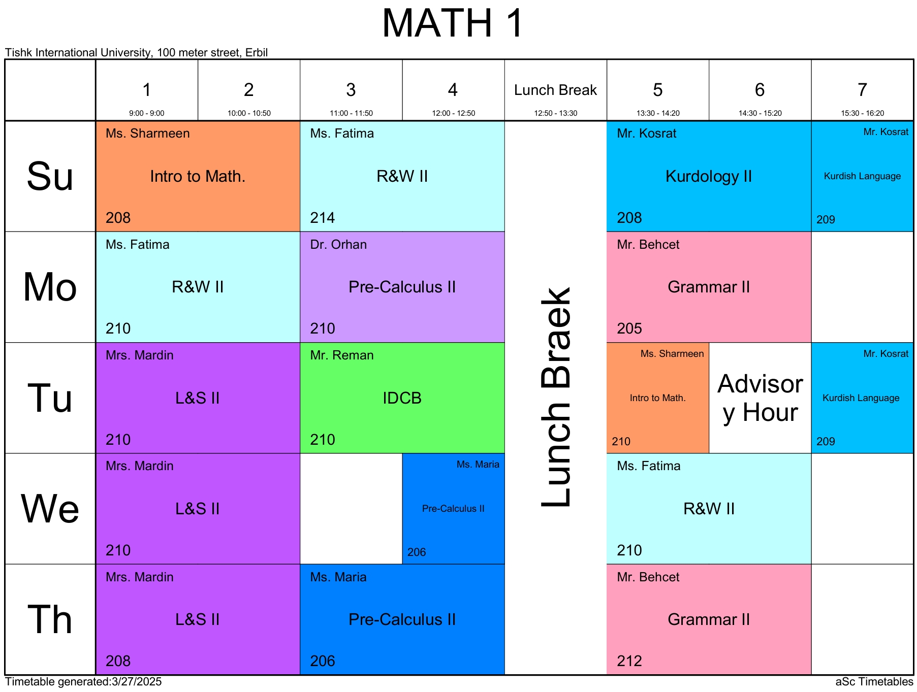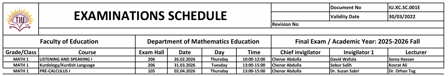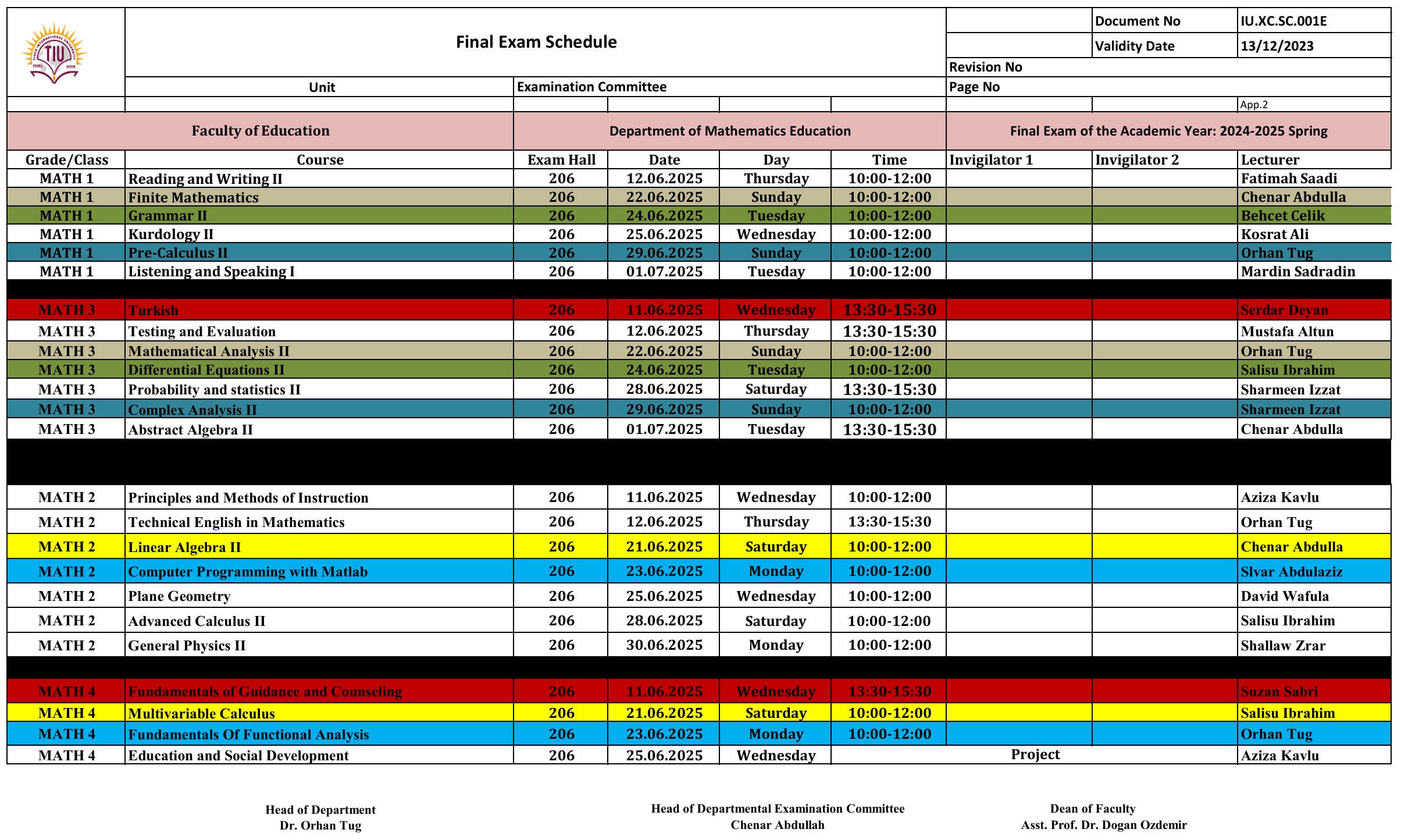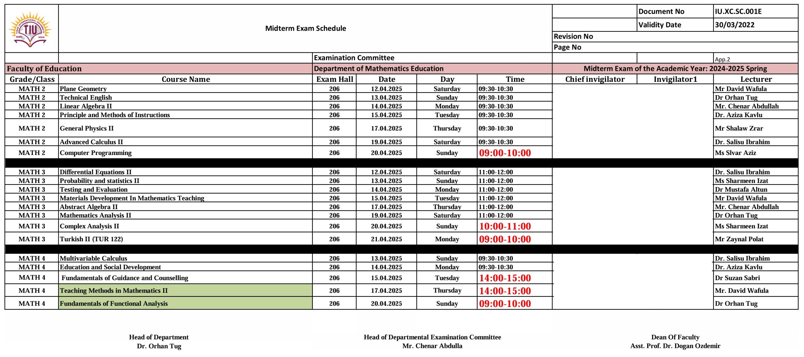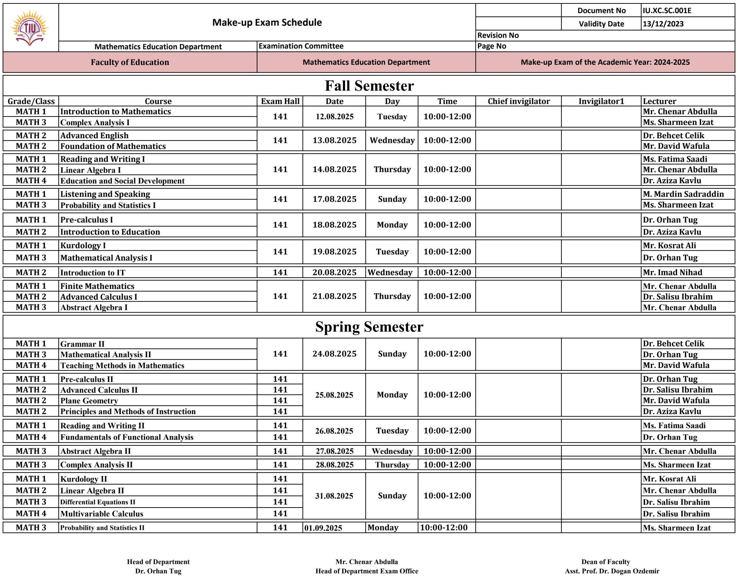 Please check dates and times carefully and make sure that you are checking the correct Schedule. Mathematics department does not give academic consideration to students who misread the published timetables.