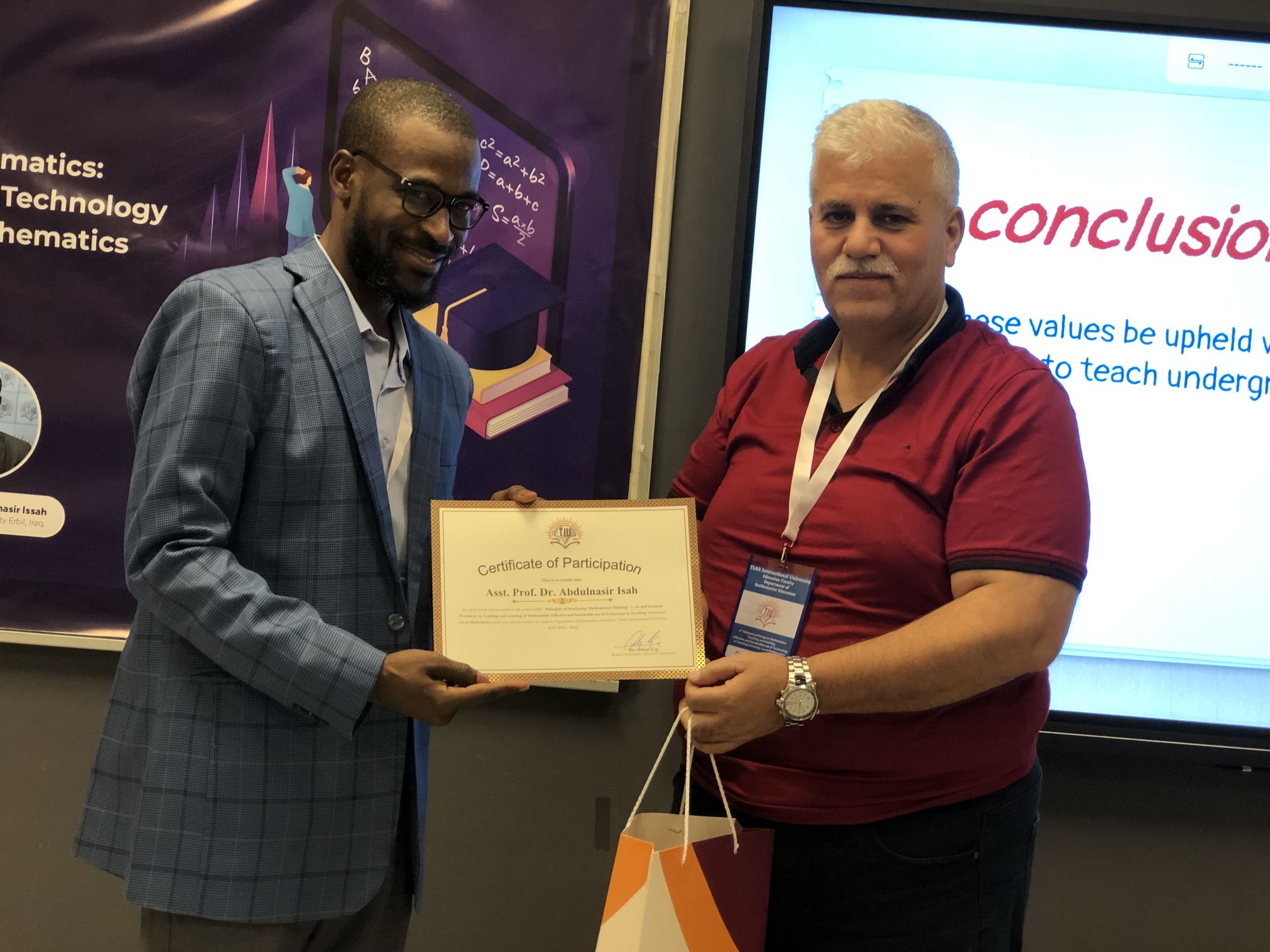 The workshop was officially opened by the chairman at 1330 hours and attended by approximately 100 academicians from different parts of Iraq including Mosul, Koya, and Erbil representing various universities, notably Salahaddin University, The University of Mosul, Koya University, Erbil Technical University and Erbil Polytechnic. In his closing remarks, the head of Mathematics Education department gave a vote of thanks to all attendees and encouraged them to partner with TIU by attending and contributing to the workshop in the coming years. Lastly, he invited all guests to a sumptuous dinner at one of the best city restaurants.