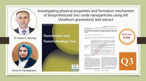 A scientific article by our academic staff Associated Professor Dr Azeez Abdullah Barzinjy and Venos Nazim Hamdamen, from Soran University, Tishk International University and Salahaddin University-Erbil entitled: Investigating Physical Properties and Formation Mechanism of Biosynthesized Zinc Oxide Nanoparticles Using Dill (Anethum). graveolens Leaf Extract, has been published in the International Journal Nanoscience & Nanotechnology-Asia, which is in the Q3 list and has an impact factor of 0.761. On behalf of the Physics Education Department at TIU, we congratulate them and wish them continuity and further success. The link to the article is attached below: