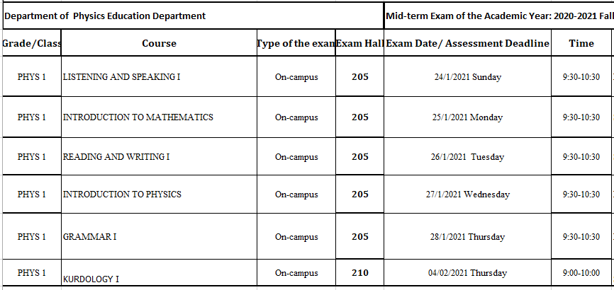 Dear students be inform that we are approaching to the Mid-term exams for first grade here is the schedule, we hope successful for all, study hard, be on time.