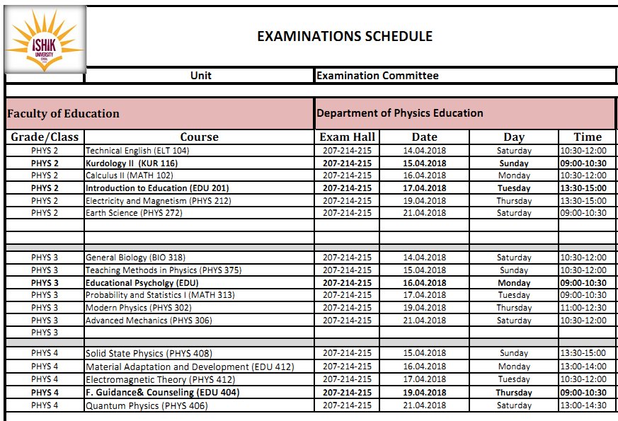 MIDTERM EXAM SCHEDULE 2017-18 SPRING TERM-Updated