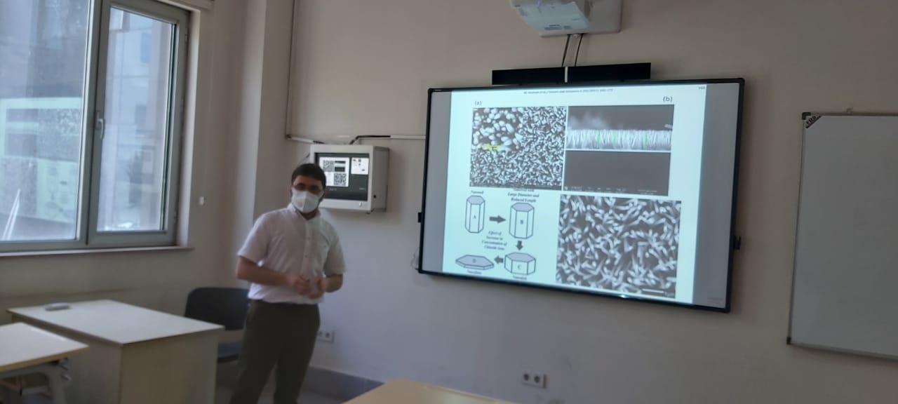 On 24th September 2020, the Department of Physics held seminars at the building of Education Faculty. The seminars were held by considering COVID 19 regulations. Two novel studies were presented by the academic staff of the Physics Department. The seminar events included important subjects that are very related to the life. One of the seminar was about nanotechnology. Dr. Muhammad Hisham presented the synthesis of Nanomaterials and their applications in green technology. He presented his recent study on two applications: self-powered devices and Nanogenerators. The presented devices are very promising in the field of clean energy. The other seminar title was about the prediction of earthquake based on the variation of Radon gas concentration. Staff from the Physics Department attended the seminars and discussed some important points for a future research work.